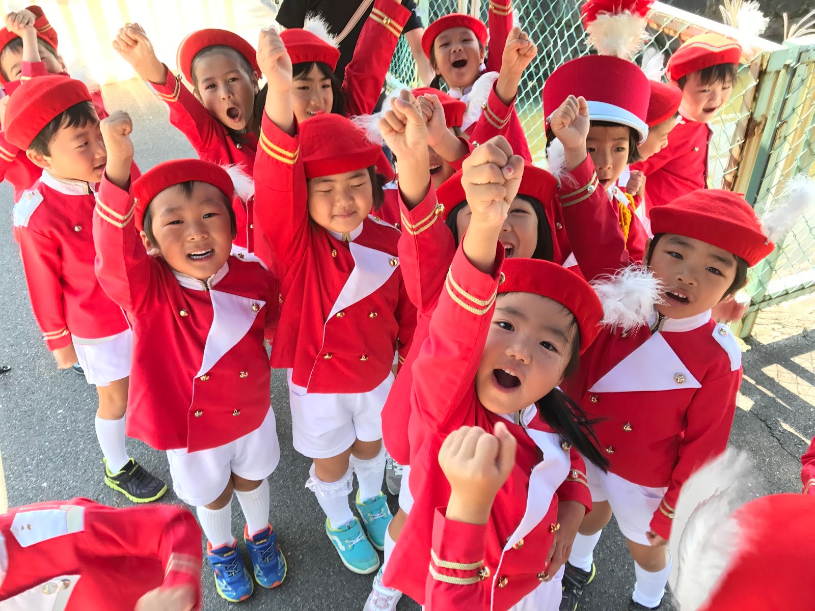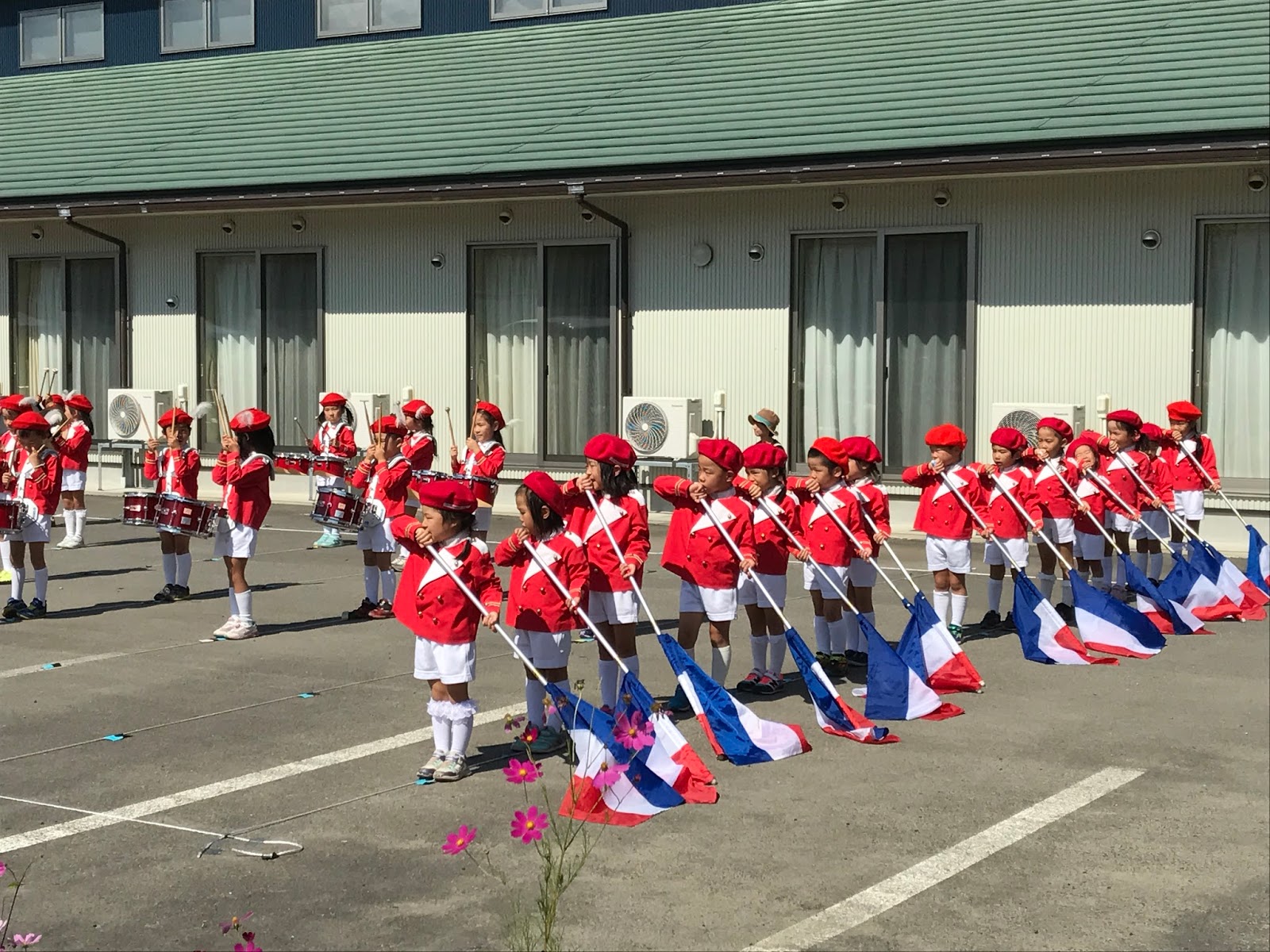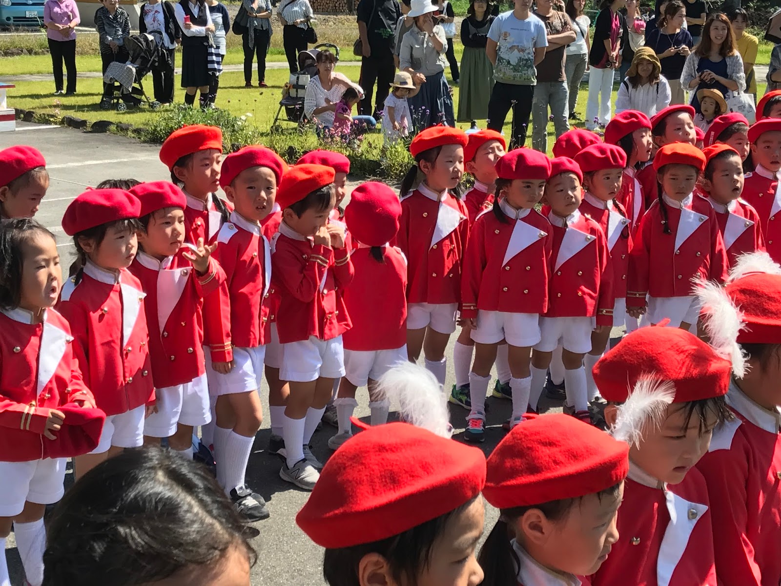 今日も、おじいさん、おばあさん、お家の方とお客さんが一杯!みなさん、見に来て頂き、ありがとうございました!真っ青な秋晴れの空に、真っ赤な衣装がとっても映えますね!子ども達の演奏に合わせて手拍子をして下さったり、涙を流されながら見ていただきました。