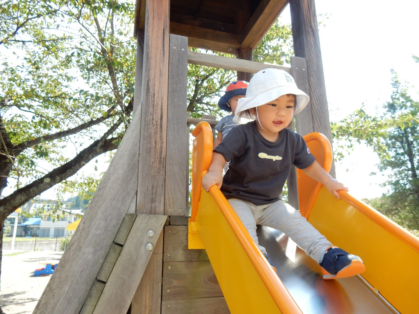 ひよこさんの園庭あそびの様子です。いい天気でうれしいですね!運動機能の発達が進み、髙い所に登ったり、走ったりと、出来ることが増えていきます!これからどんどん、運動遊びが楽しみになりますね!子ども達が、安全に、思い切り遊べるように、私たちは危険がないよう見守ります。時に、先生の方が楽しんでる!?なぁんて日もありますが♪一緒に遊んでくれる大人が楽しそうな笑顔を見せることが、子ども達の安心感にもつながりますよね♡
