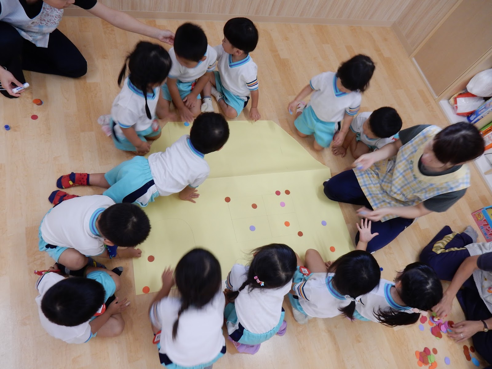 ひまわりさんの組立体操の練習をテラスに出てみてくれたひよこさん。拍手をしてもらって、ひまわりさんも嬉しそうでした!最初は座って見ていたひよこさんでしたが、この後どんどんテラスの外に裸足のまま出ていき… (笑)
