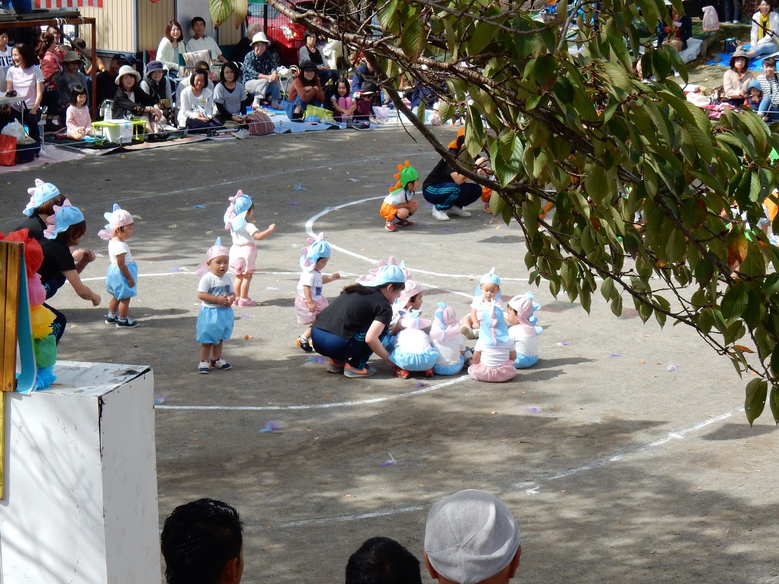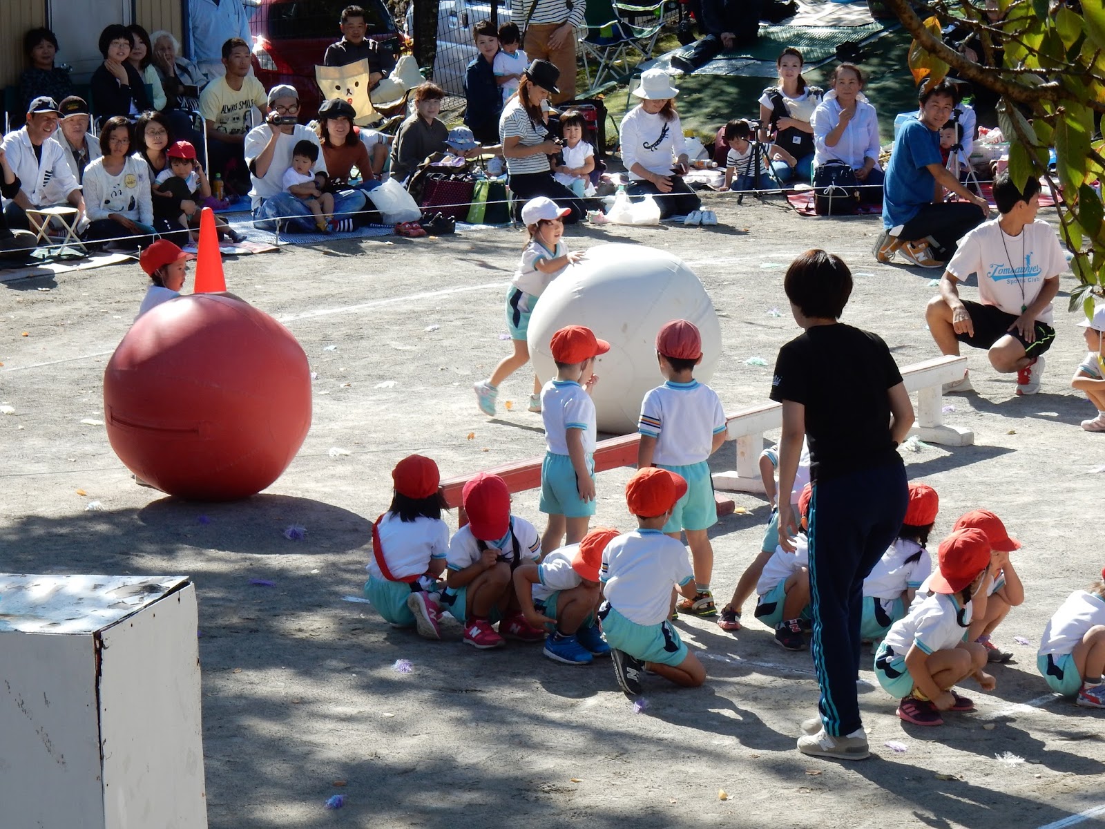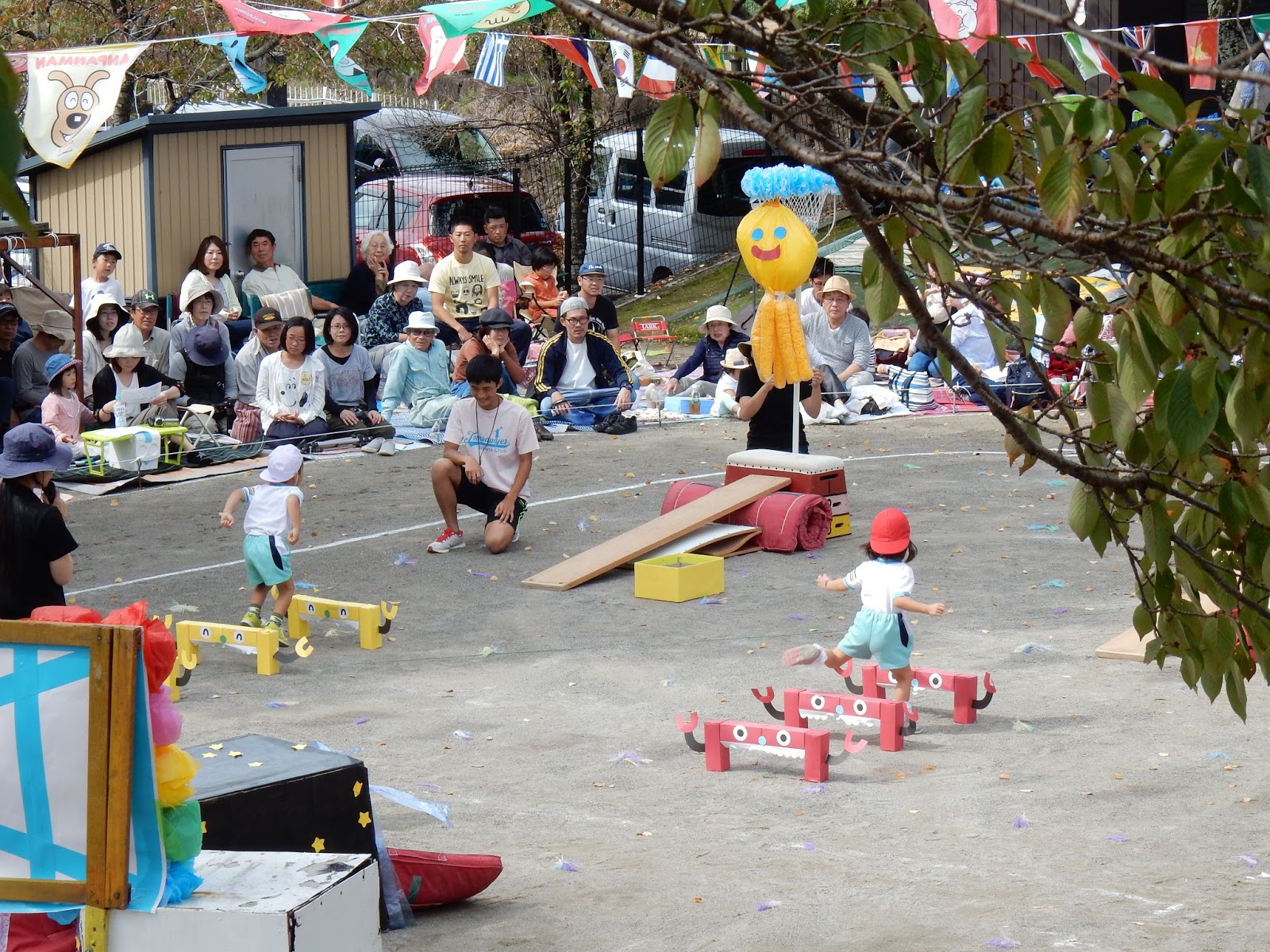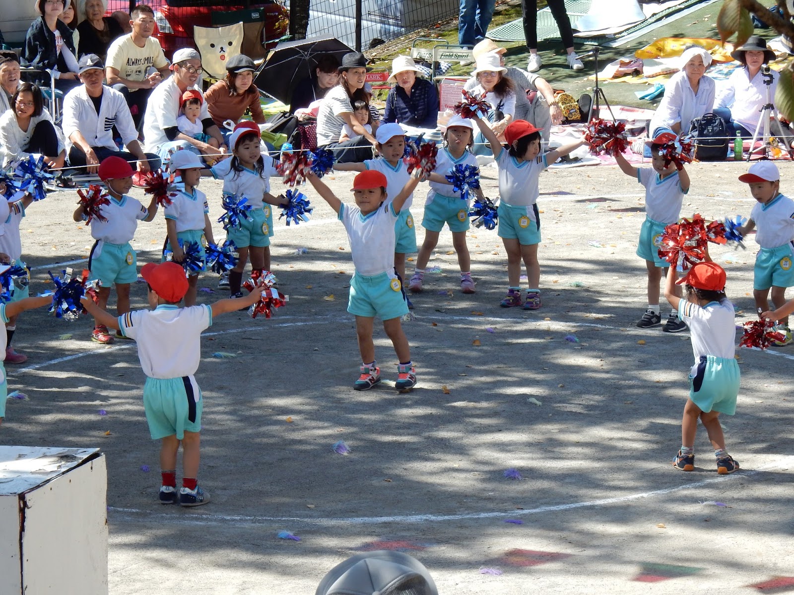 園庭一杯に、お客さんが来てくれて、緊張しちゃった子も、張り切ってできた子も!みんな、運動会までの練習の成果を発揮して、本当に良く頑張りましたね!勝ったり、負けたり、結果以上に、この日の姿からみんなの日々の頑張りは、お父さん、お母さんに伝わったんじゃないかなあ!と思います。