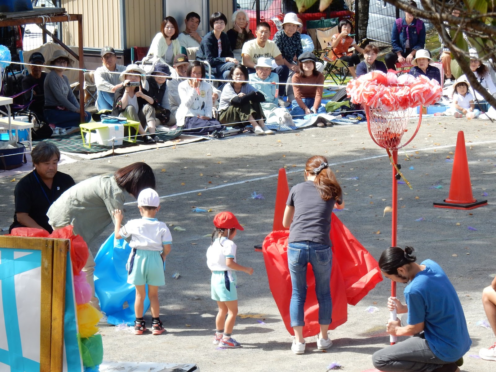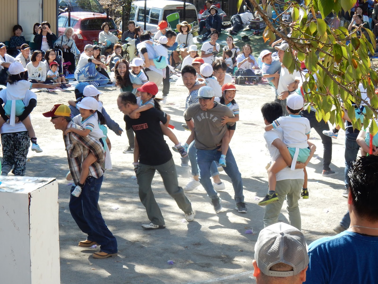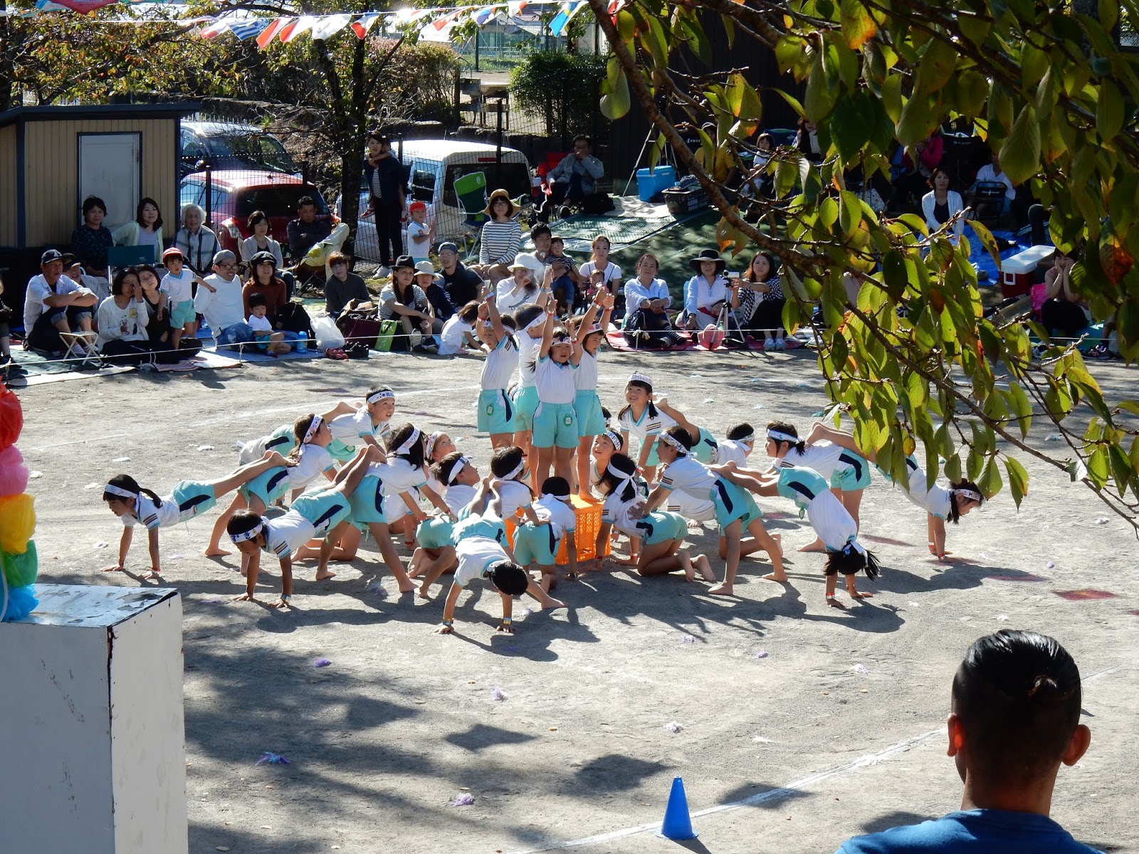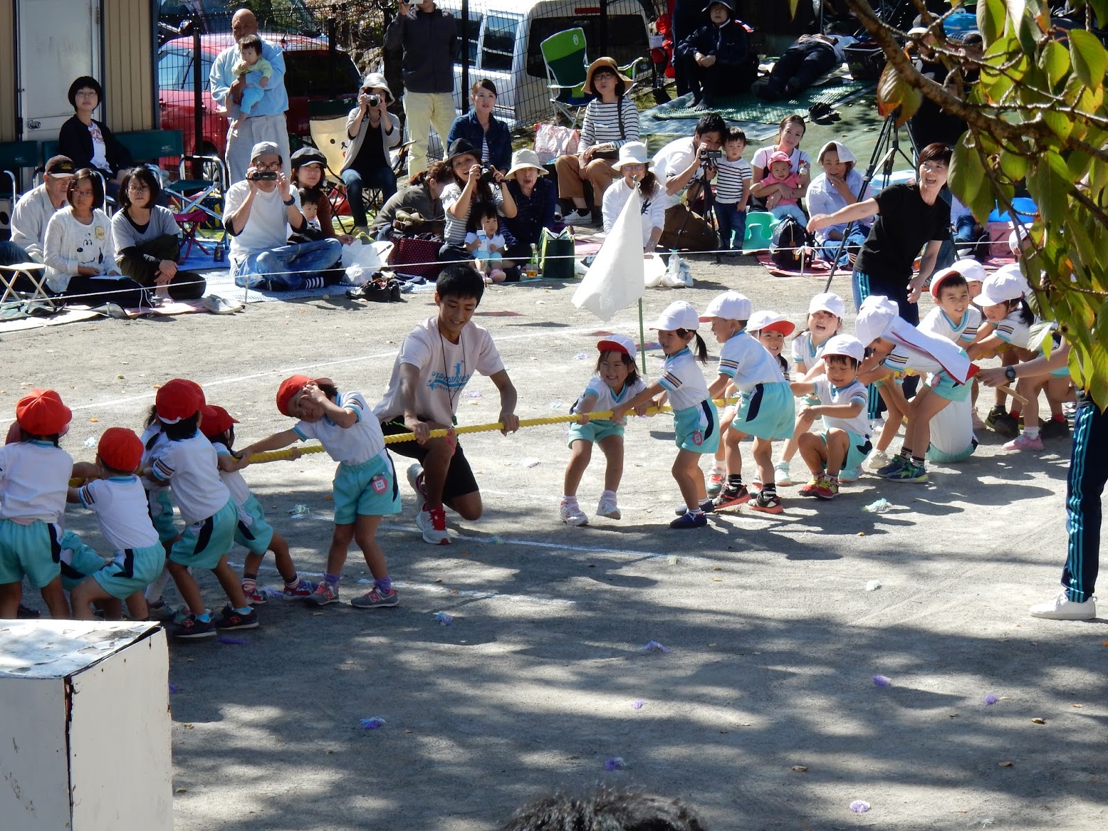 園庭一杯に、お客さんが来てくれて、緊張しちゃった子も、張り切ってできた子も!みんな、運動会までの練習の成果を発揮して、本当に良く頑張りましたね!勝ったり、負けたり、結果以上に、この日の姿からみんなの日々の頑張りは、お父さん、お母さんに伝わったんじゃないかなあ!と思います。