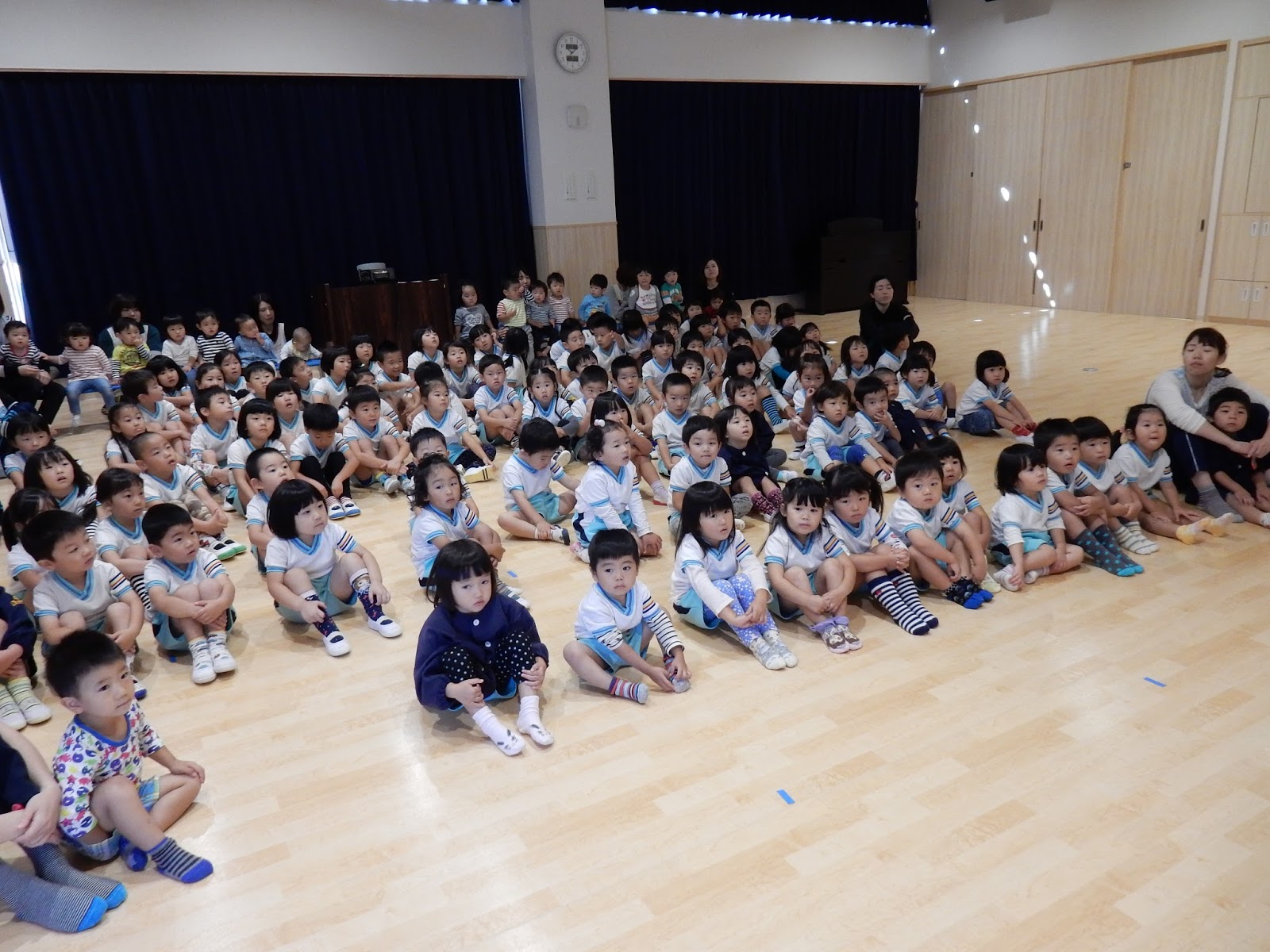 今日は、みんな元気かな??と顔を見ながらの体操です。朝、お日様のもとでしっかり身体を動かすと、1日元気に頑張れそうですよね!大きいクラスから、小さいクラスまで、みんなが園庭に集まる時間もなかなかないので、兄弟や、バスで一緒のお友達なんかを気にして名前を呼び合う姿も。縦のつながりも、大切にしていきたいですね!
