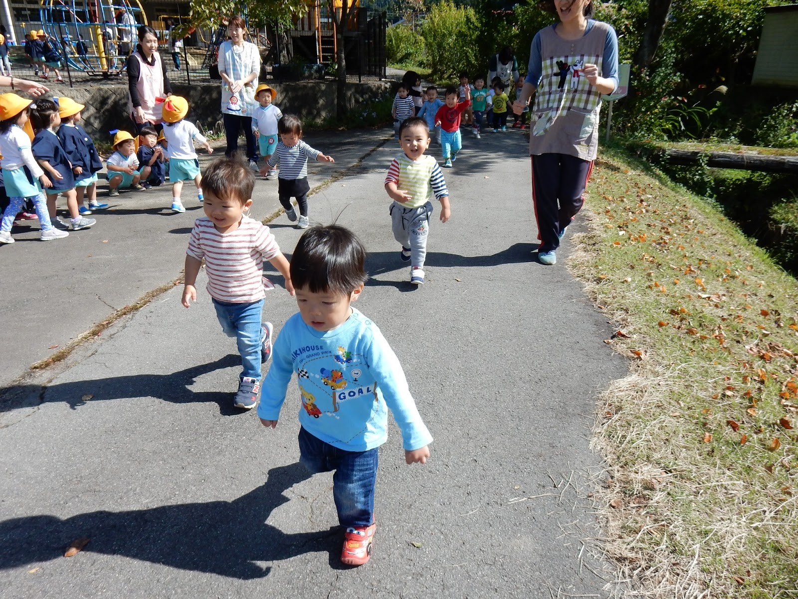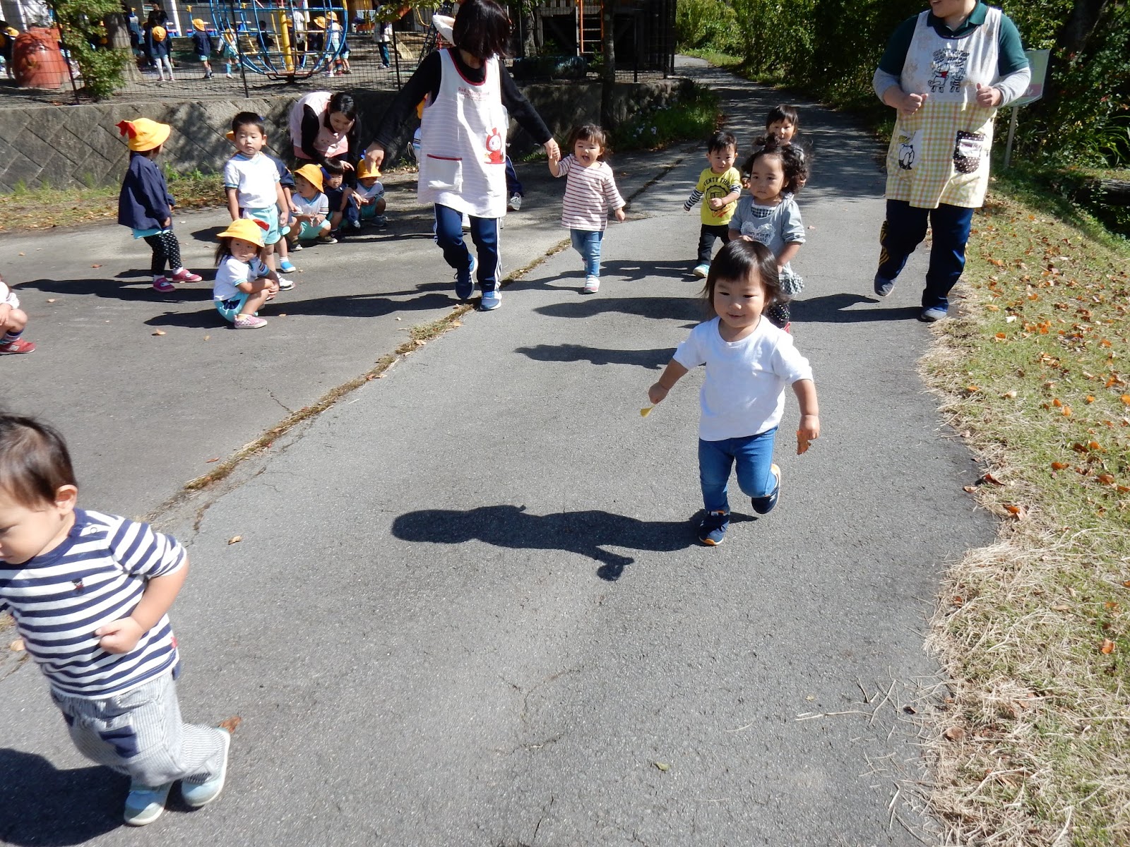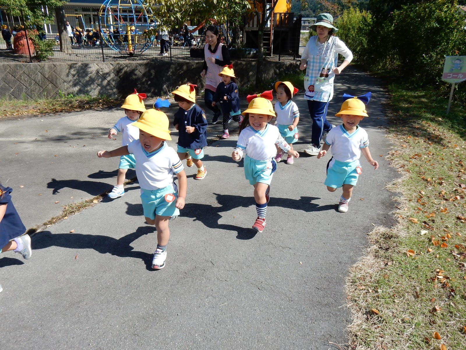 もちろん、すみれさんや、ひよこさんも走ります!折り返し地点で待っていてくれる先生の所まで走って、ゴールまで戻ってきます。両手を広げて待っている先生に飛び込んでいく姿は、本当に可愛らしいです♡♡よちよち歩きだったお友達が、しっかりした足取りになっていたり、成長を感じますね!