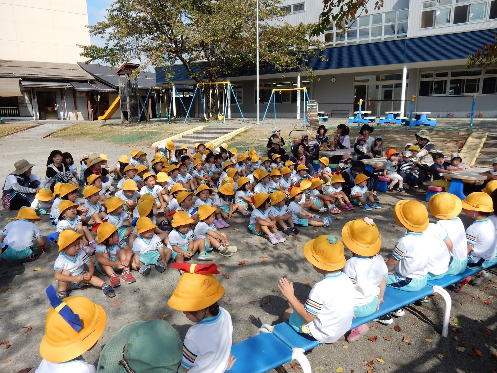 今日もとってもいい天気でした!10月のお誕生日会は、園庭で行いました!体操、マラソンを終えて、ちょっと日陰に移動していたみんな。今月もたくさんのお友達が誕生日を迎えましたよ!