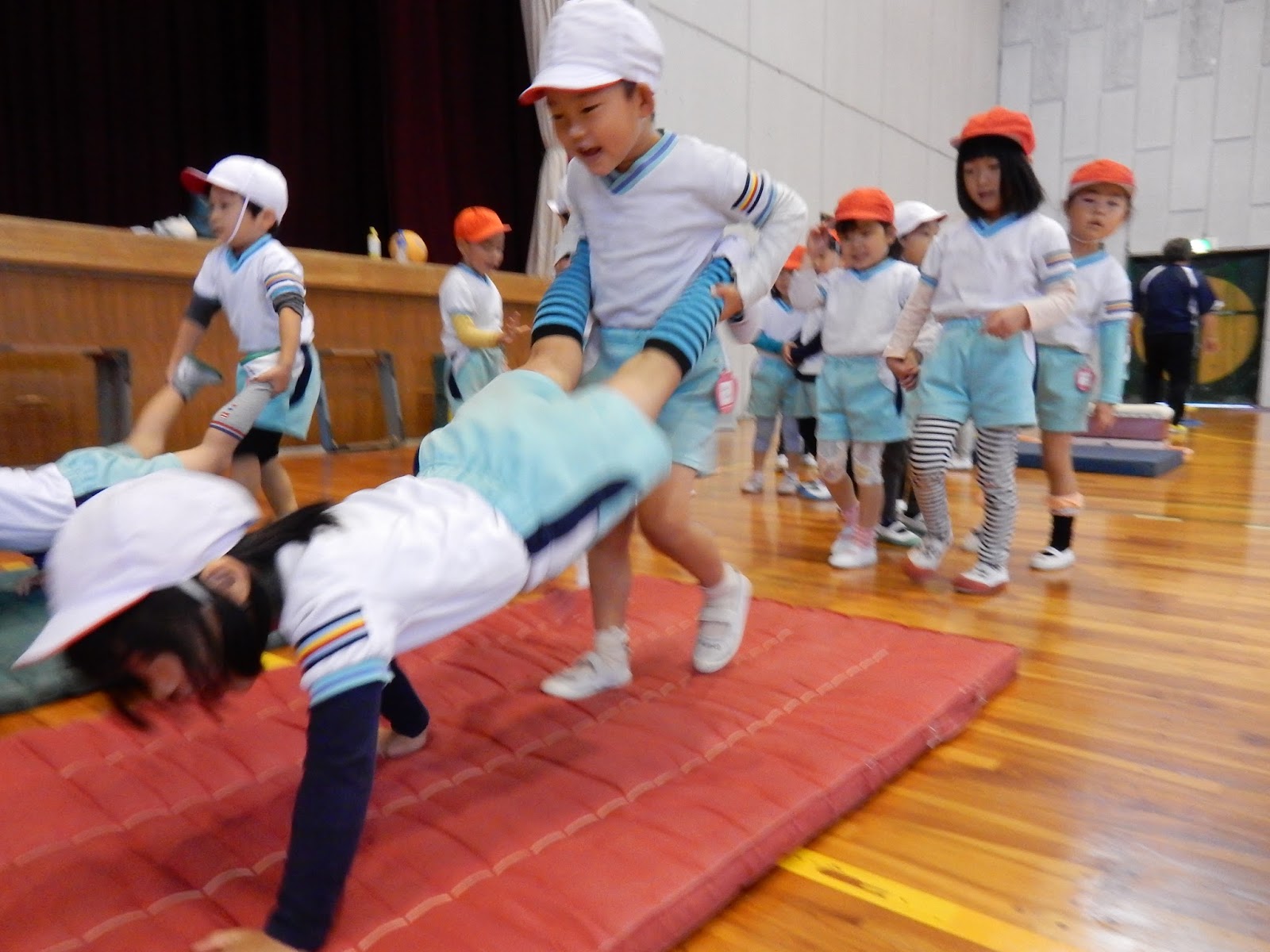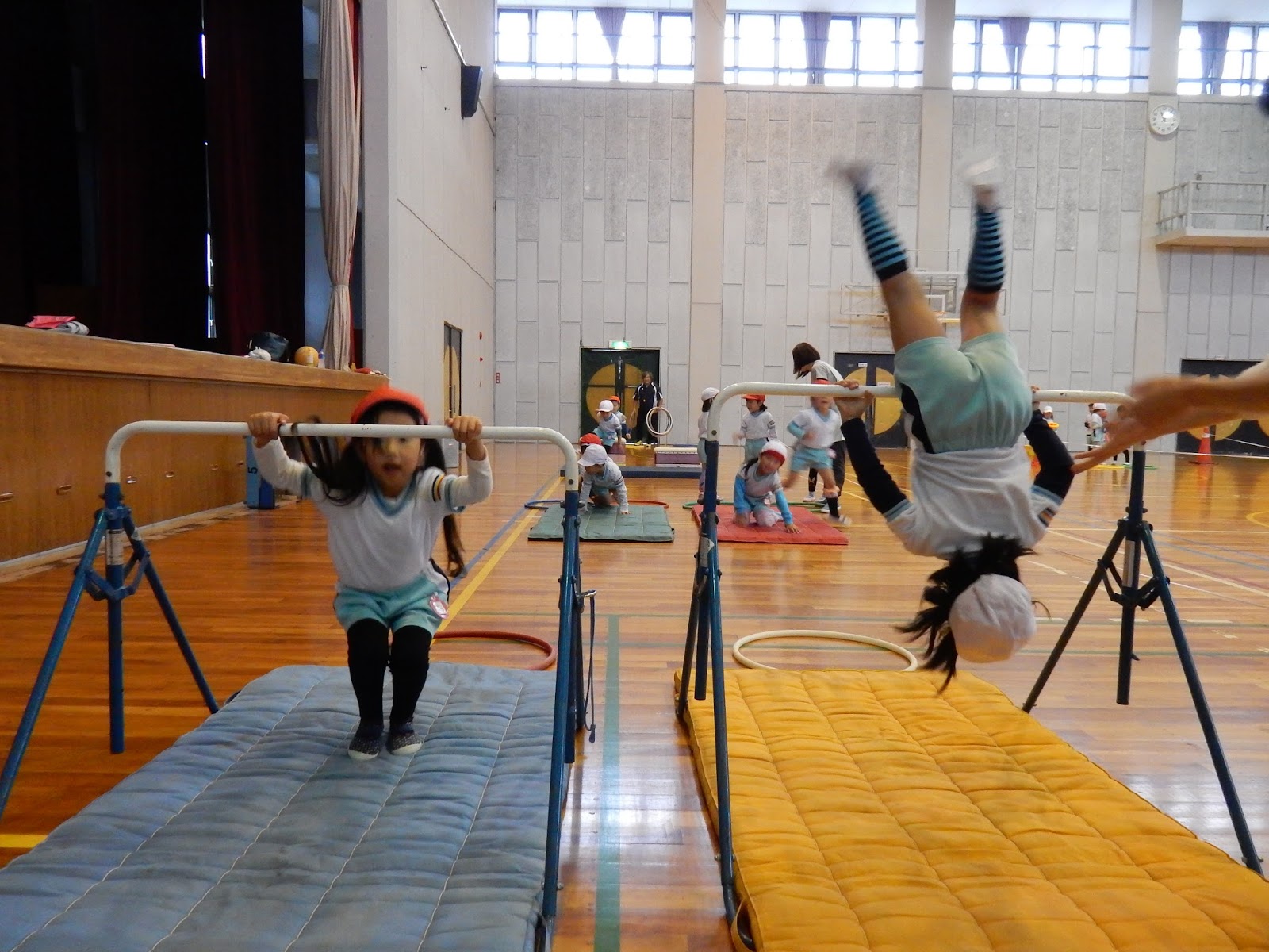 運動会で、年長さんの格好いい姿をたくさん見ているので、みんな真似っこです!どんな事でも挑戦してみる事って大事ですよね!できるようになった時のキラキラ笑顔がまぶしいです!