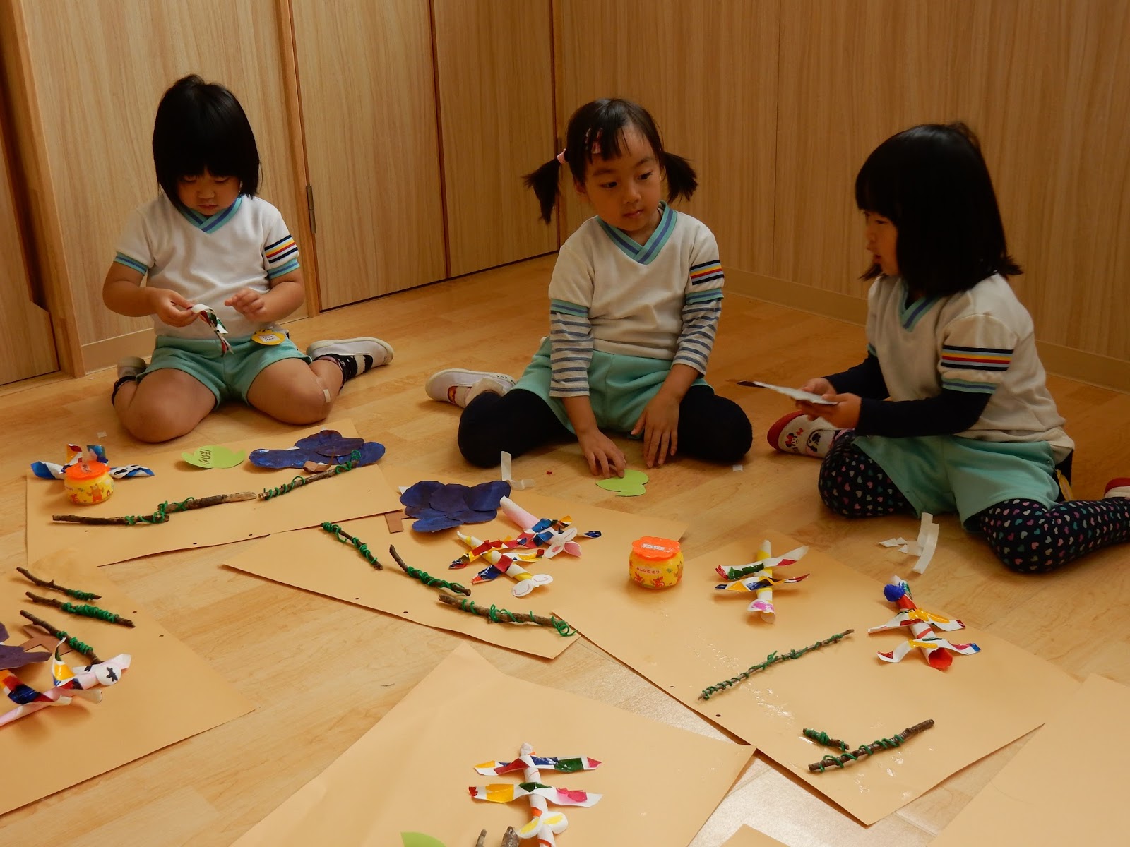 たんぽぽさんは、昨日の続き。ぶどうを貼りつけていました。みんなで壁面に飾っていたものも、画用紙に貼りつけて保管しています。1年間の作品を振り返れるように、年度末には家庭に持ち帰りますよ!楽しみにしていてくださいね!