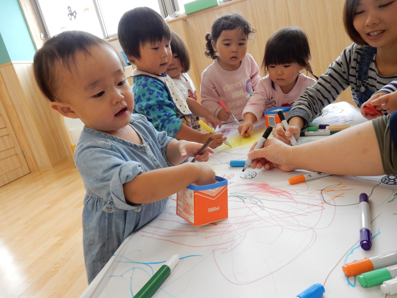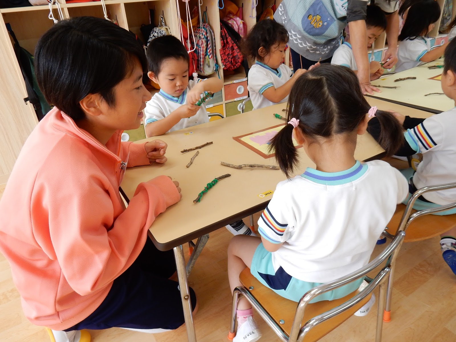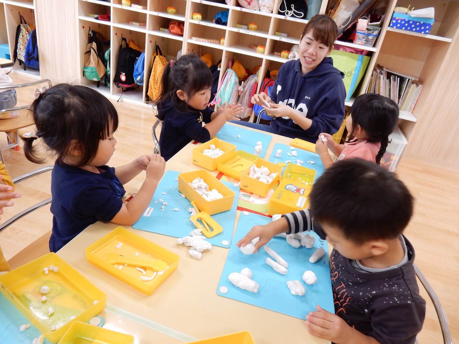 今日は、楽しみにしていたわいわいデー!!!…は延期になってしまいましたが、お気に入りの服で登園してきたみんなはテンション高め!(笑)『みて、みて~!!』と、自慢げに私服を紹介してくれました。そんな今日は、各クラスお部屋での保育でしたが、楽しそうな遊びが一杯でしたよ!
