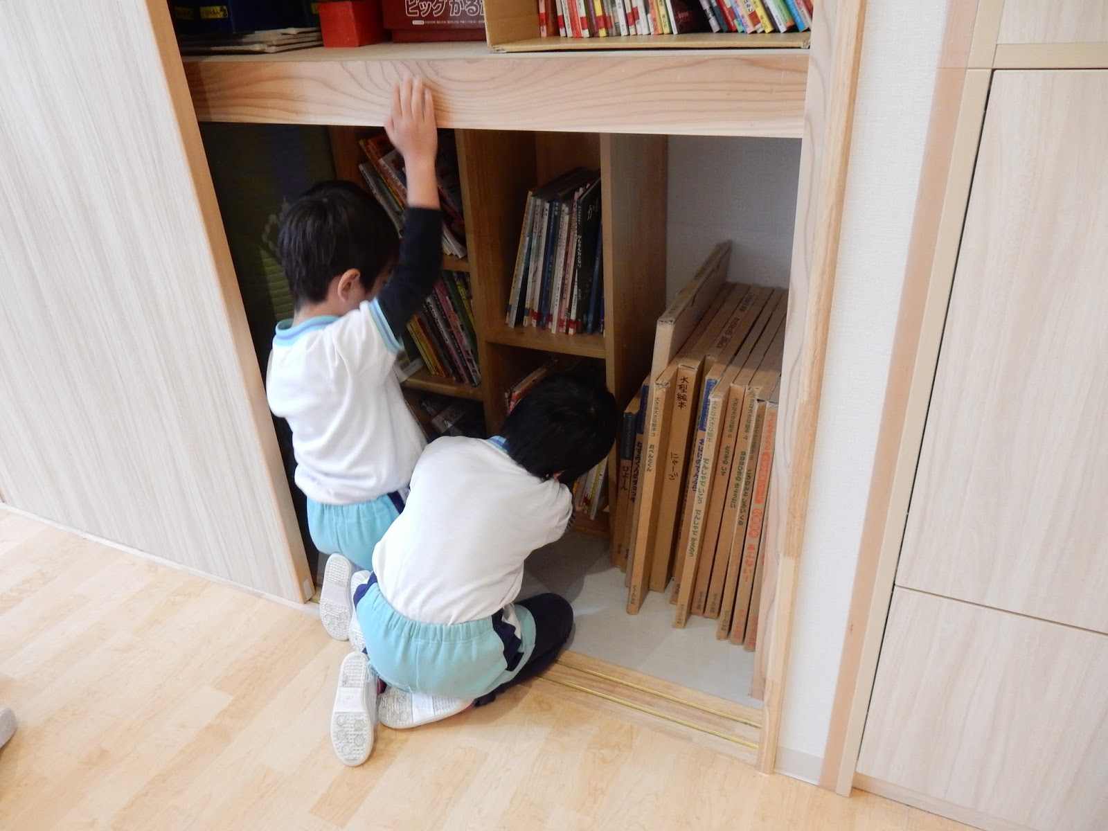 ひまわりさんは、ホールで絵本選び!好きな絵本を選んで絵を描くんですって!読書の秋!みんな、お気に入りを1冊選んでキープ!!ここの場面を描く!!って決めて教えてくれましたよ!