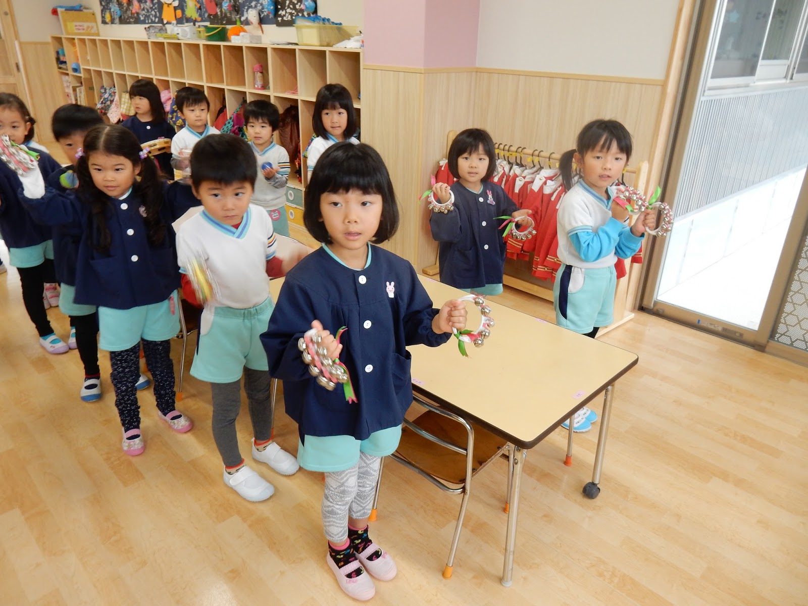 ゆりさんは、楽器あそびをしていましたよ!発表会に向けて練習!!の前にいろんな楽器に触れてみました。使ったことのある楽器ですが、とっても久しぶりだったので、楽しそうでしたよ♪鼓隊をひまわりさんと一緒にやっていたので、トマトや、バナナのリズムも上手!合奏を見るのが楽しみになりました!