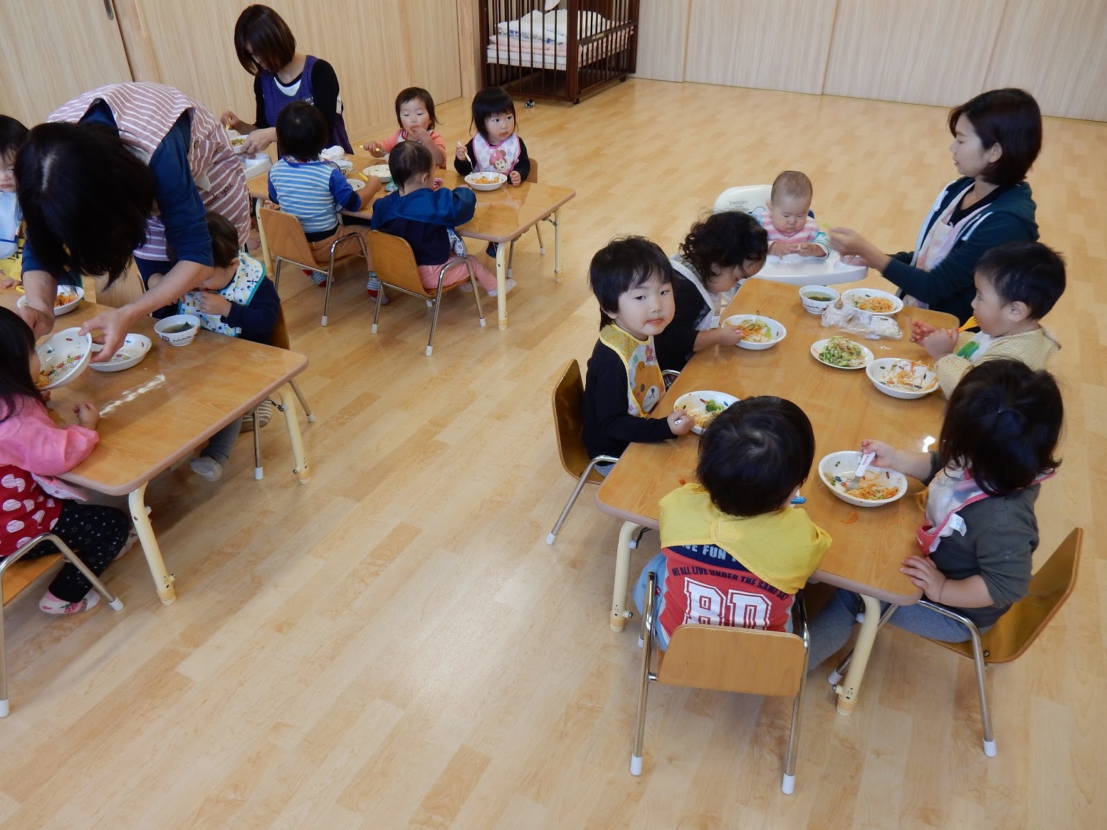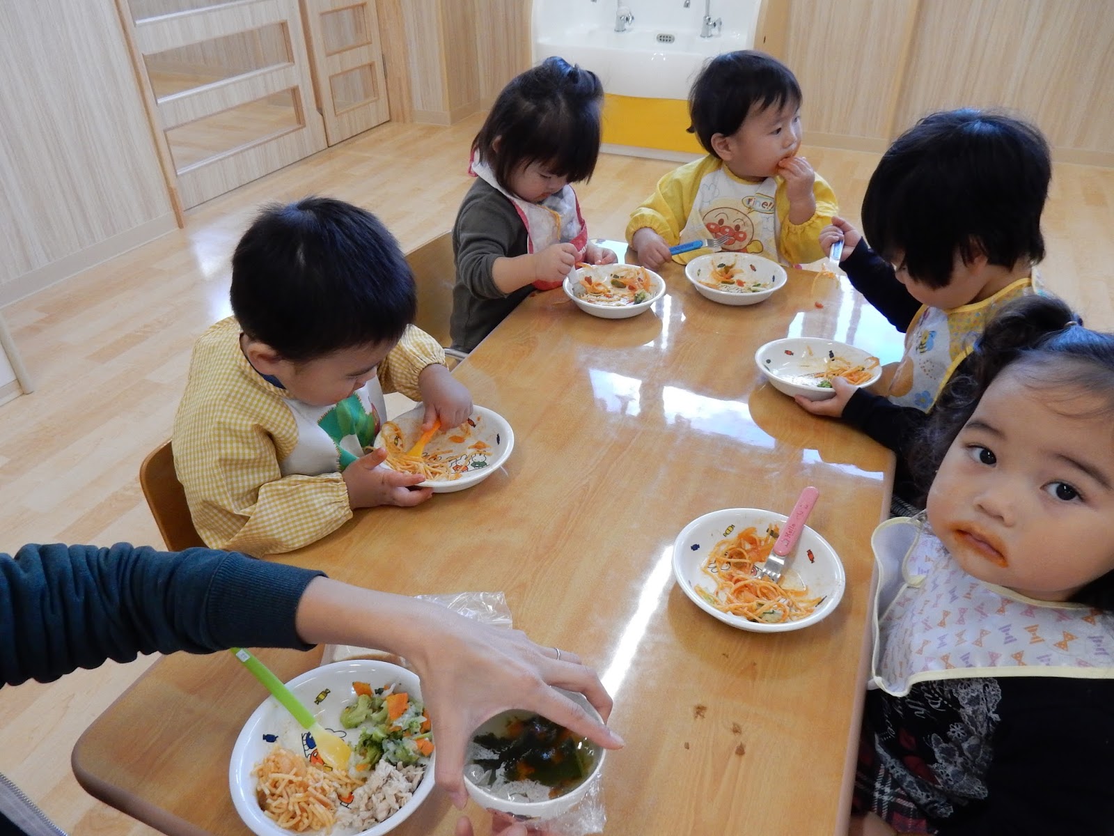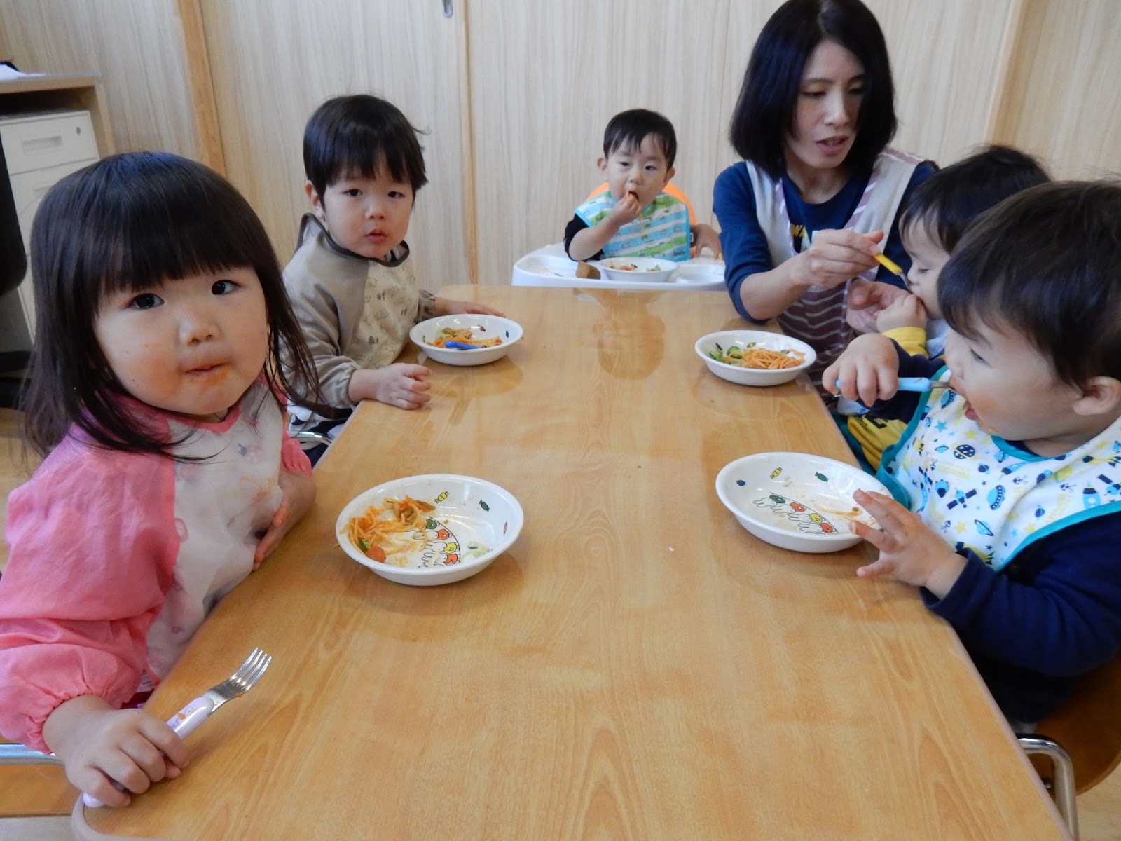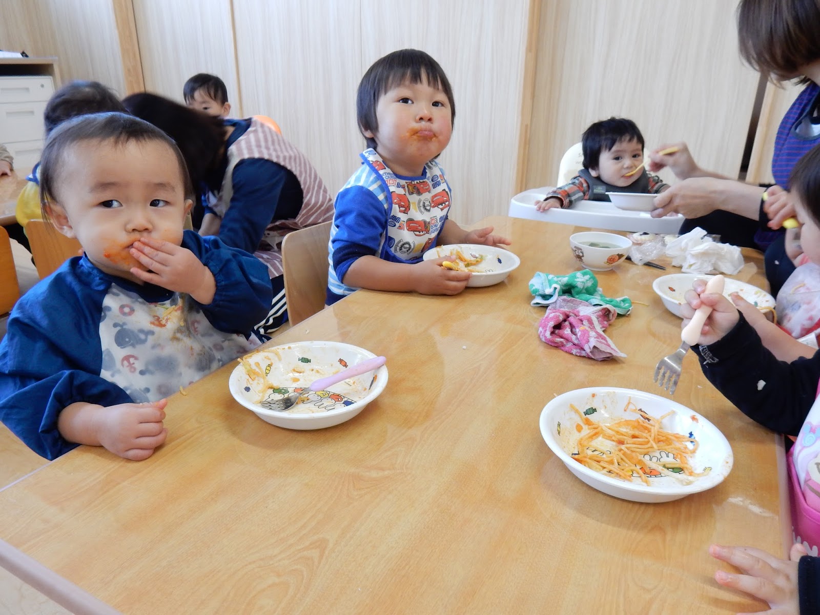 みんなお口の周りを真っ赤にしておいしそうに食べていましたよ!みんなの食欲にビックリ!本当によく食べるひよこさんです!たくさん食べて大きくなぁれ!!