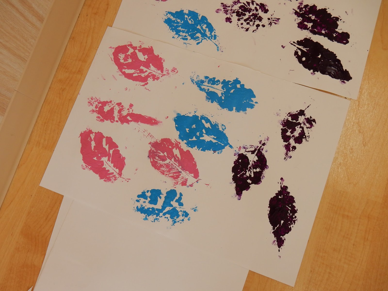 拾ってきた葉っぱに絵の具を付けて画用紙の上でぺたん!なかなかキレイに出ましたよ!!この葉っぱをまた製作に使うんでしょうね!楽しみですね!