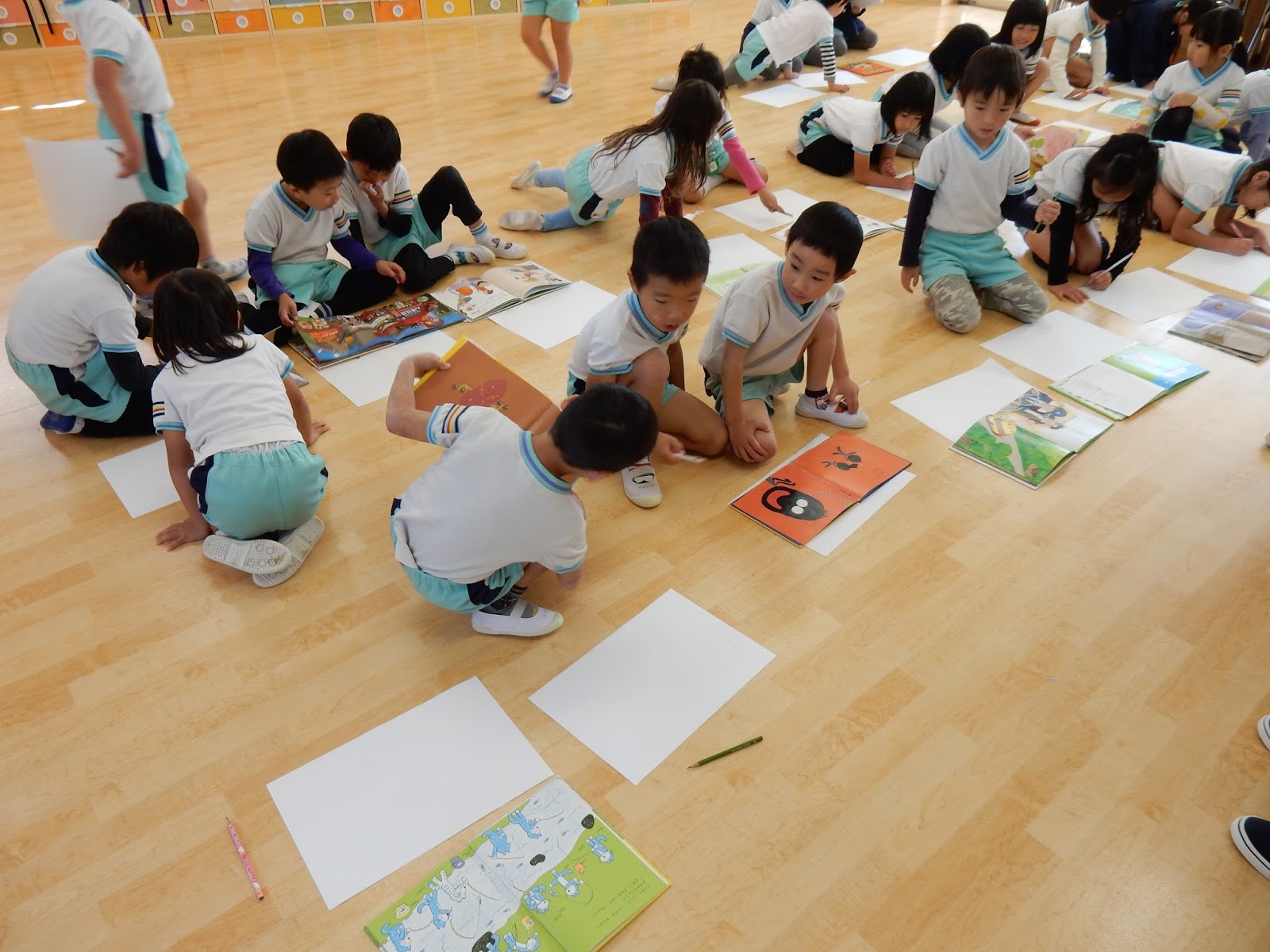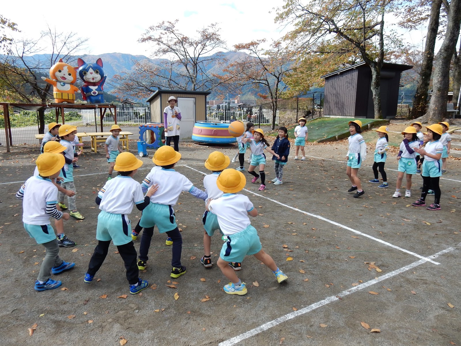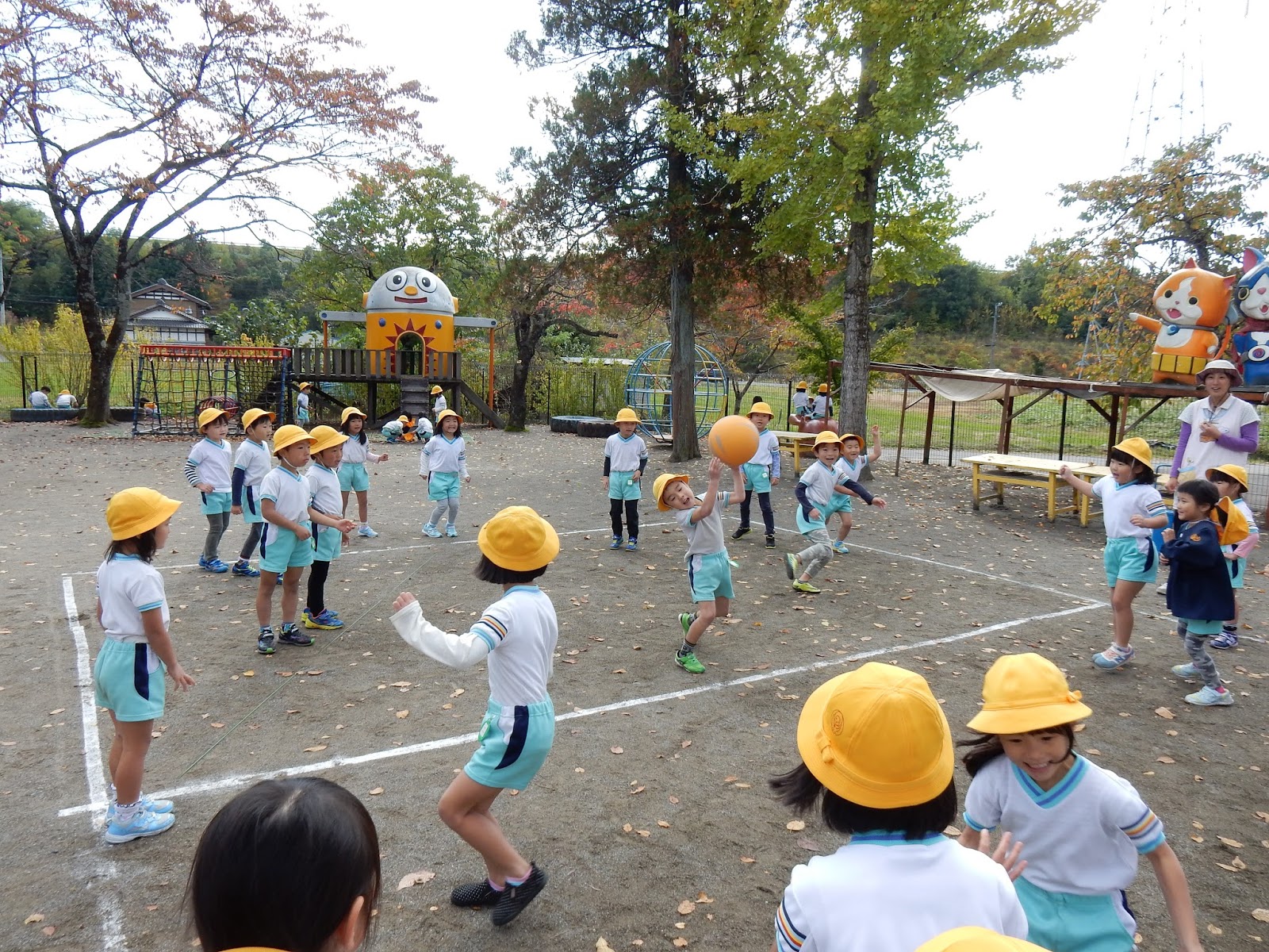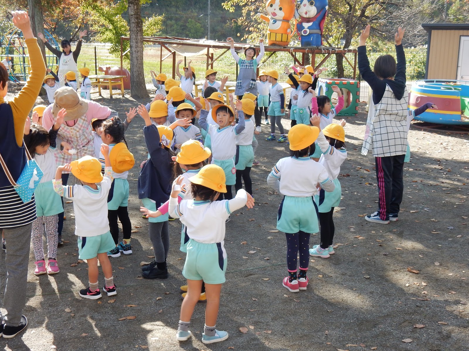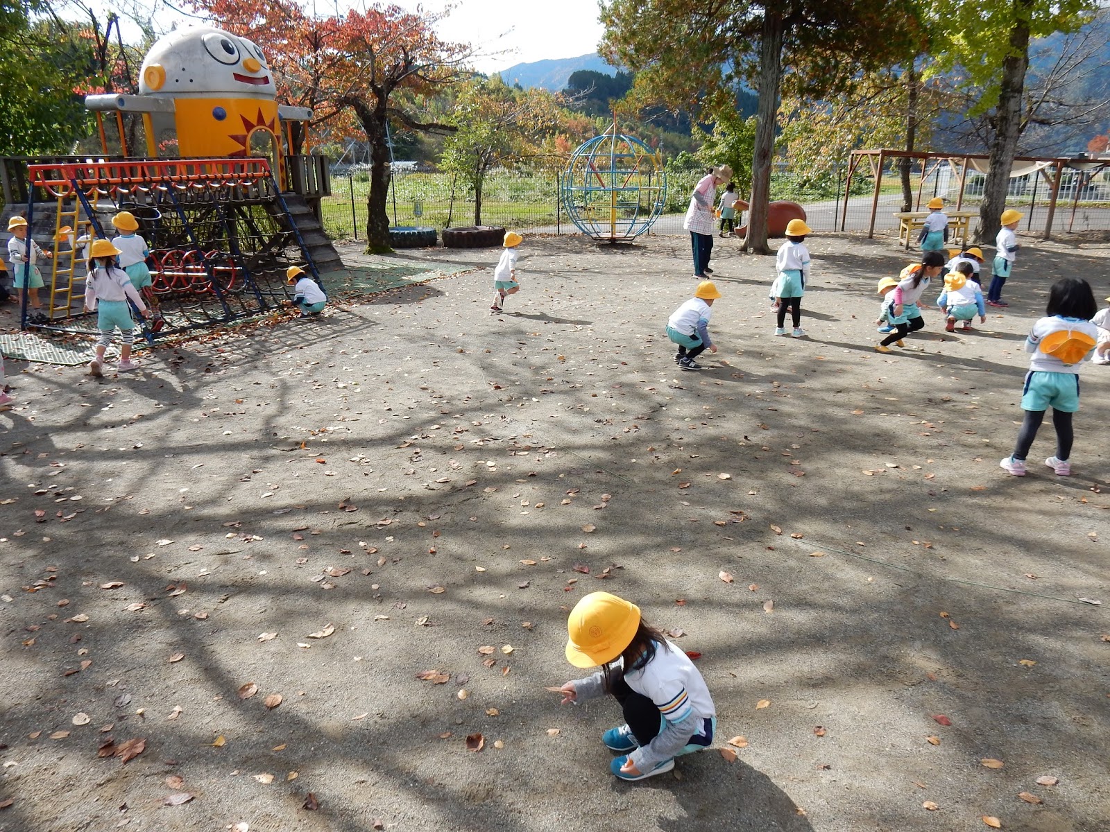 今年のマラソン大会が明後日行われます。マラソン前の準備体操は、子ども達も大好きなどんぐり体操です。運動会もそうでしたが、体操をする時は、園庭にクラスごとに体操並びをするのが定番です。でも、このどんぐり体操をする時だけは違うんです。大きい3クラスのお友達は、バラバラに散らばって、走ったり、跳んだり、回ったり。さぁ!お子さんを見失なわないように、よ~く!!探してくださいね!(笑)