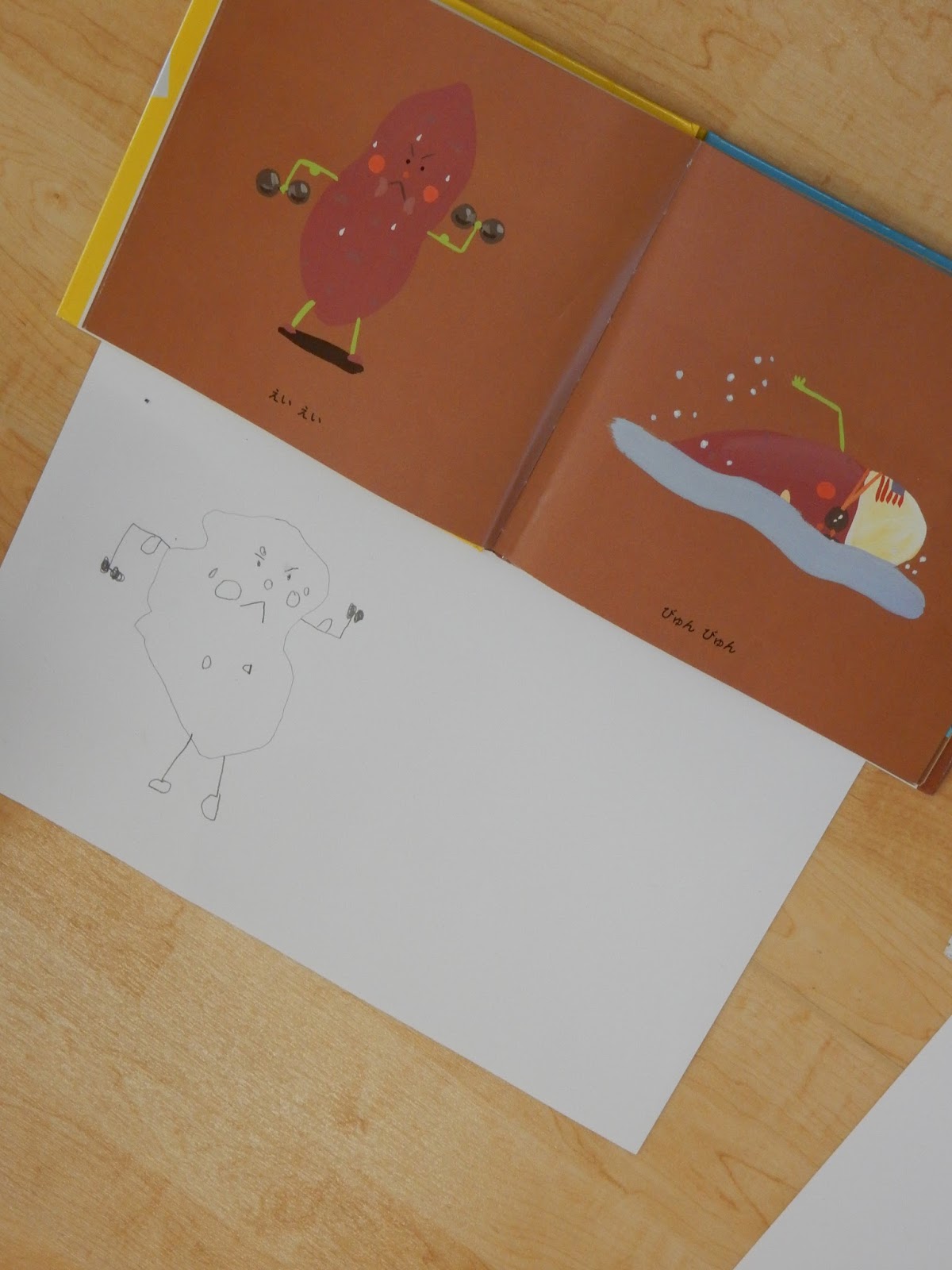 たんぽぽさんは、キャンディー先生と英会話を楽しんでいました。今日は本当のハロウィン。ぬり絵をしたり、間違い探しをしたり。ハロウィンじゃんけんを教えてもらって挑戦しました!かぼちゃ、魔女、コウモリを体で表現します。1,2,3!でキャンディー先生と同じポーズ(あいこ)だと負け!なんですが、たんぽぽさんにはまだ少し難しかったみたい。同じポーズでも、違うポーズでも『イエーイ!!』というキャンディー先生につられて『イエーイ!!』(笑)