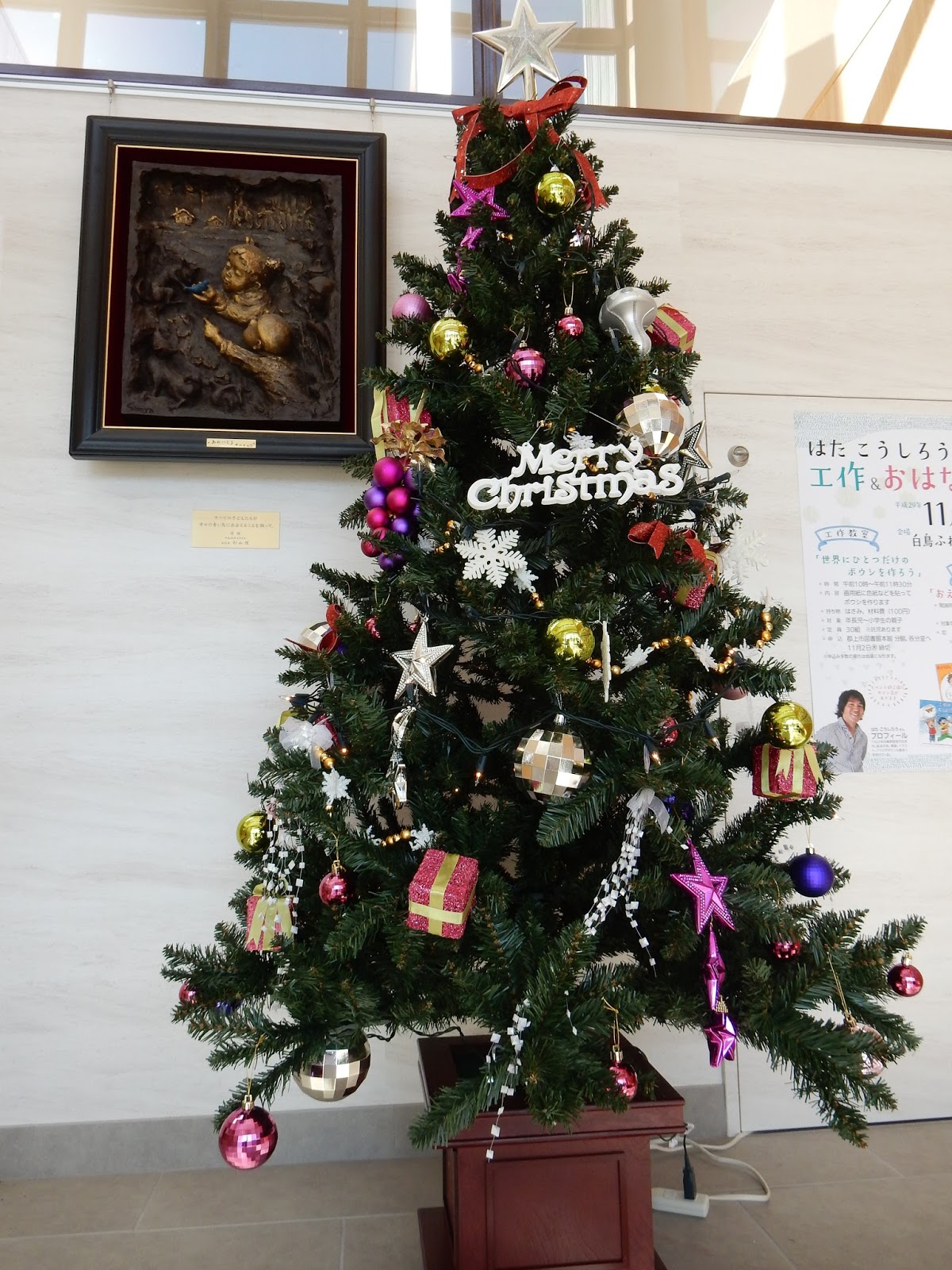 エントランスにクリスマスツリー設置しました♪子ども達もすぐに気が付いて見てくれましたよ!
