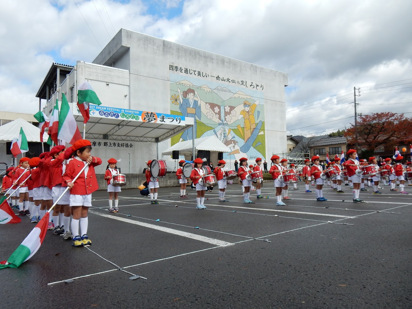 11月11日、昨日はゆりさん、ひまわりさんの最後の鼓隊公演でした。しろとりの夢まつり会場にて、たくさんの皆さんの前で堂々と演奏してきましたよ!