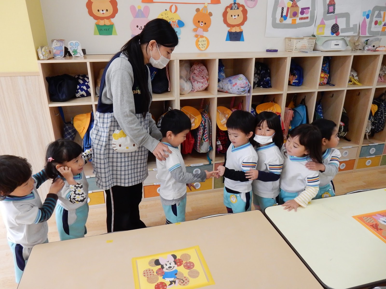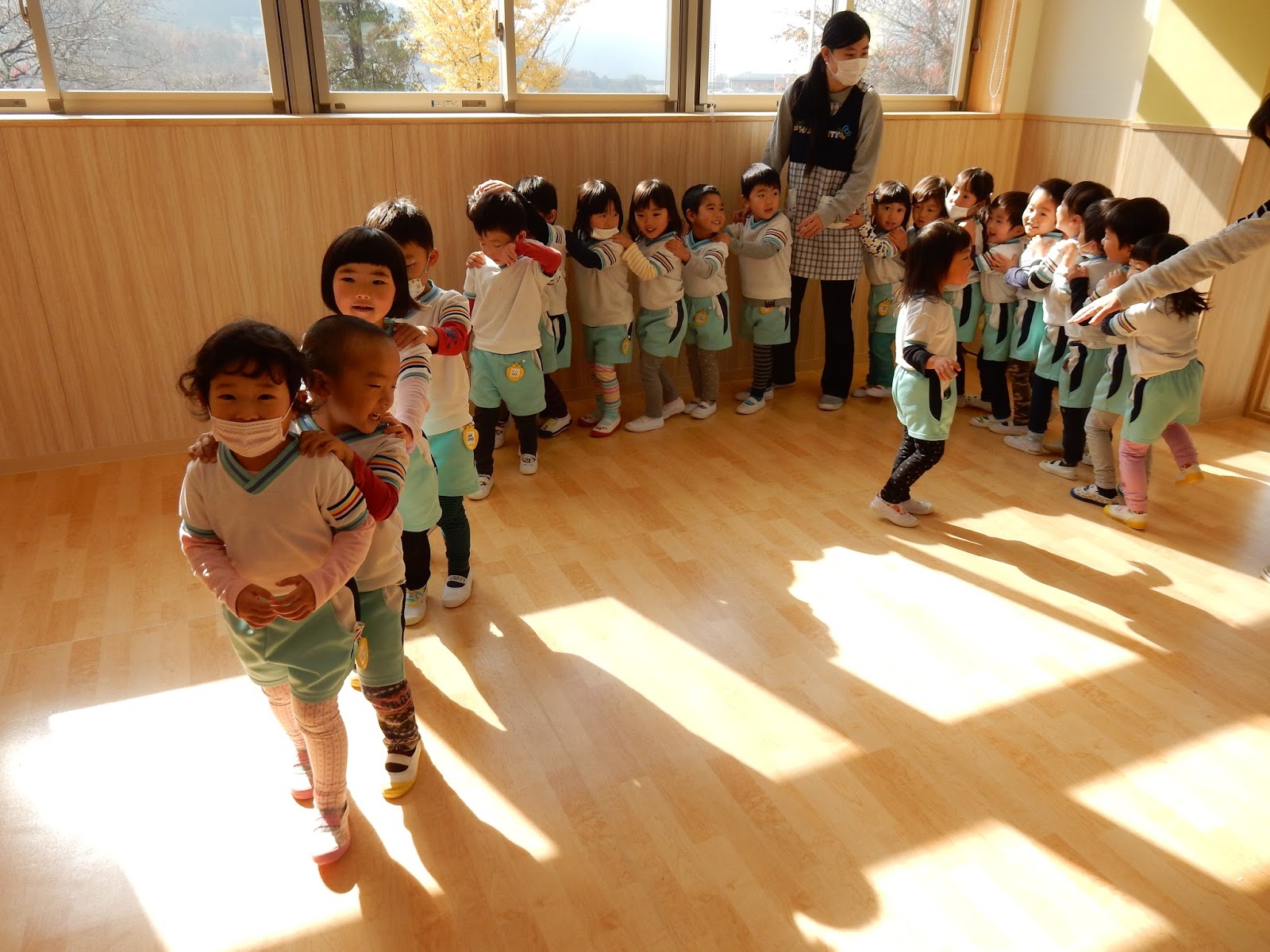 今日は、避難訓練の予定でしたが、天候が不安定だったため、明日に延期しました。明日はまたぐっと冷え込むみたいですね…体調管理には気を付けましょう!子ども達も、マスクをしたり、手洗いうがいをして風邪予防をしています!
