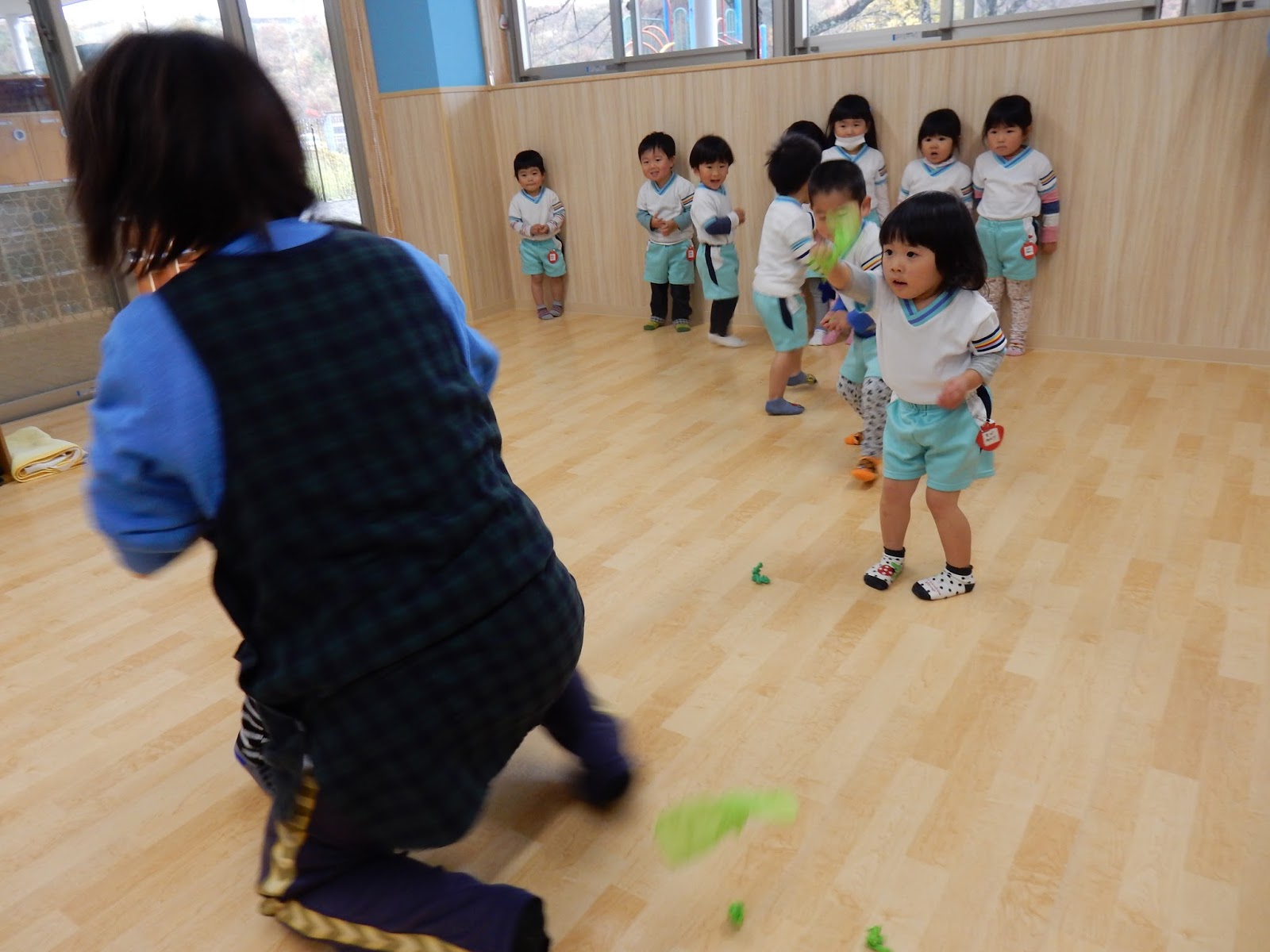 お天気がスッキリせず、お部屋での生活が続いています…そろそろ思い切り外を走り回りたい!!と思う子ども達。そんな日も、お部屋の中で体操をしたり、ホールを有効活用したり、身体を動かす遊びを取り入れたりと、各クラスごとに工夫して過ごしています。