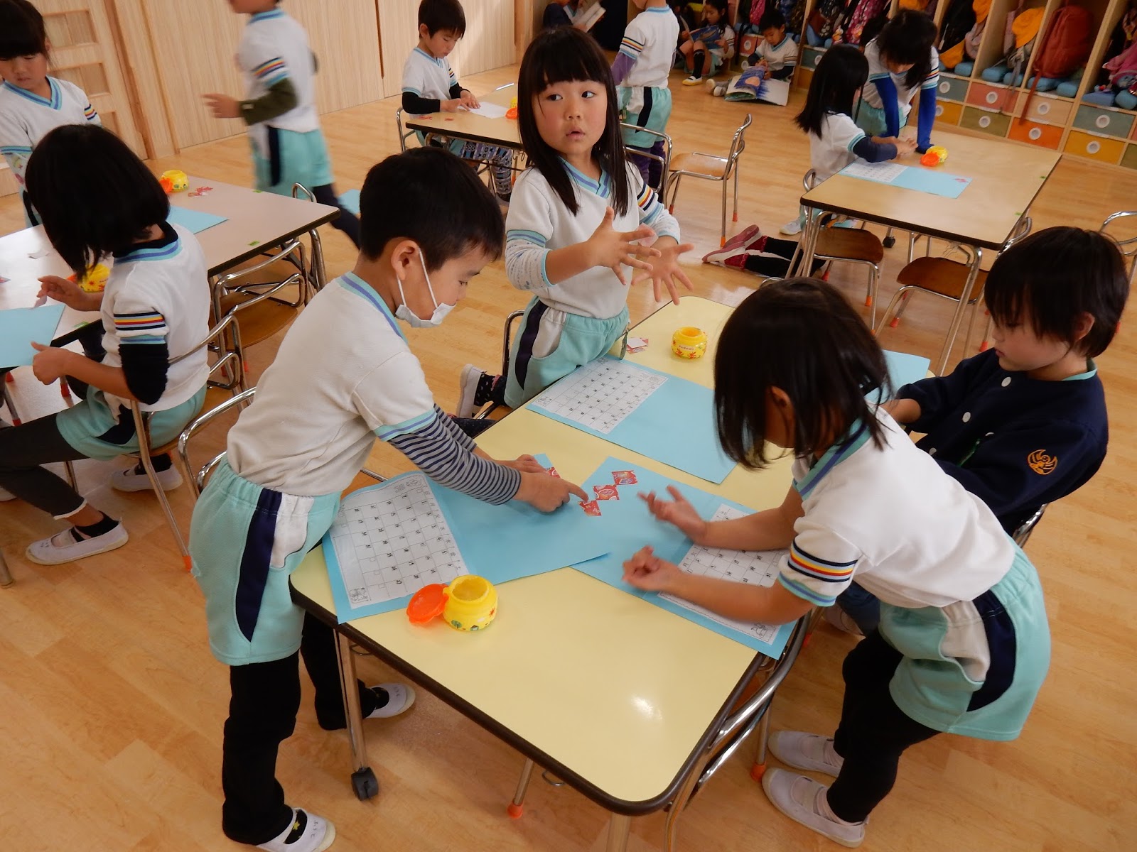 毎回、英会話の最後にはカードのプレゼントがあります。今日は、ピーマンと、なす。英語は少し難しかったけど、みんな覚えたかな??身近なものから、英語に親しみをもってくれるといいですね!
