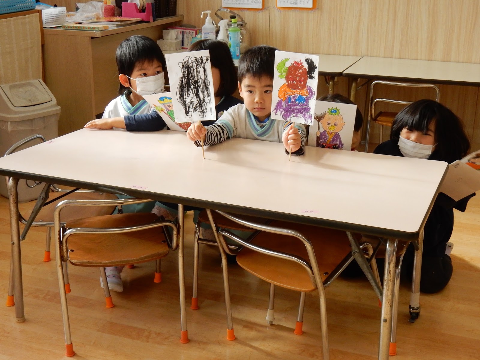 ゆりさんでは今日もペープサートを作っての劇遊び。前回作って遊んでみたので、要領をつかんでいるみんな。今日は、“そんごくう”前回が赤ずきんちゃんだったので、今日は男の子が大喜びのないようでした♪