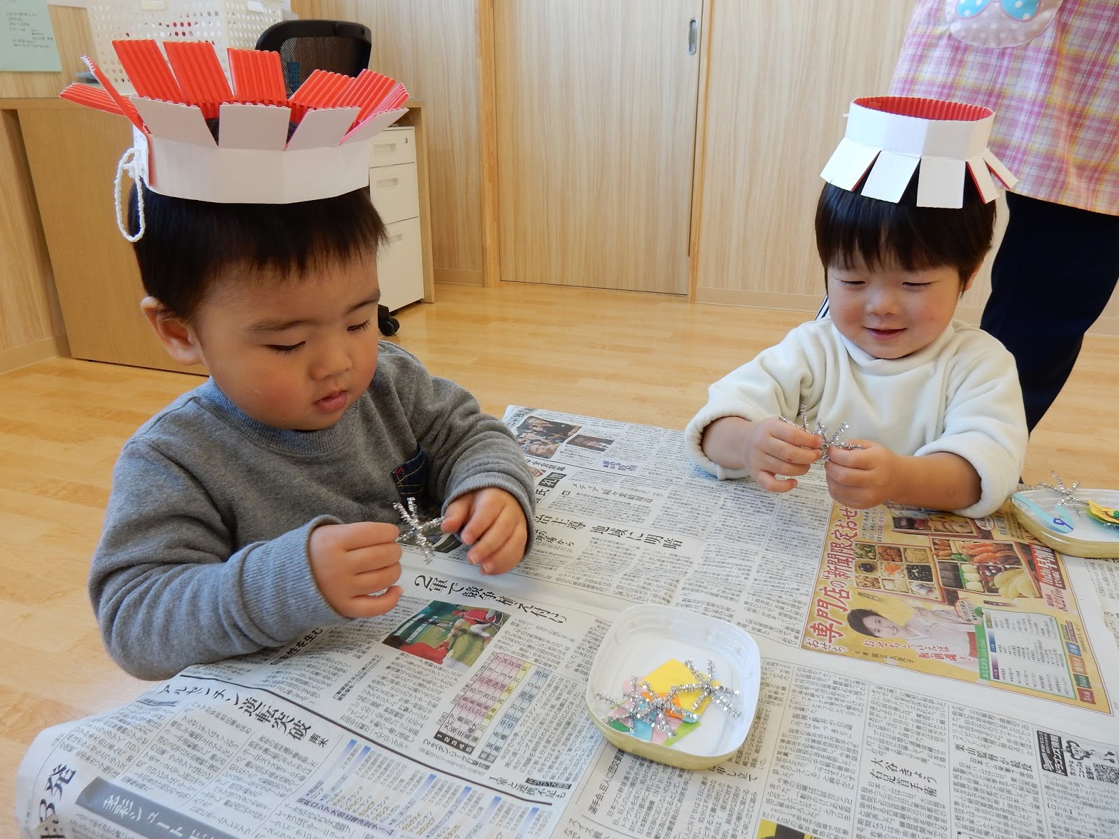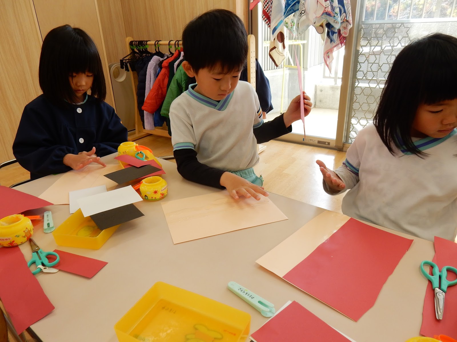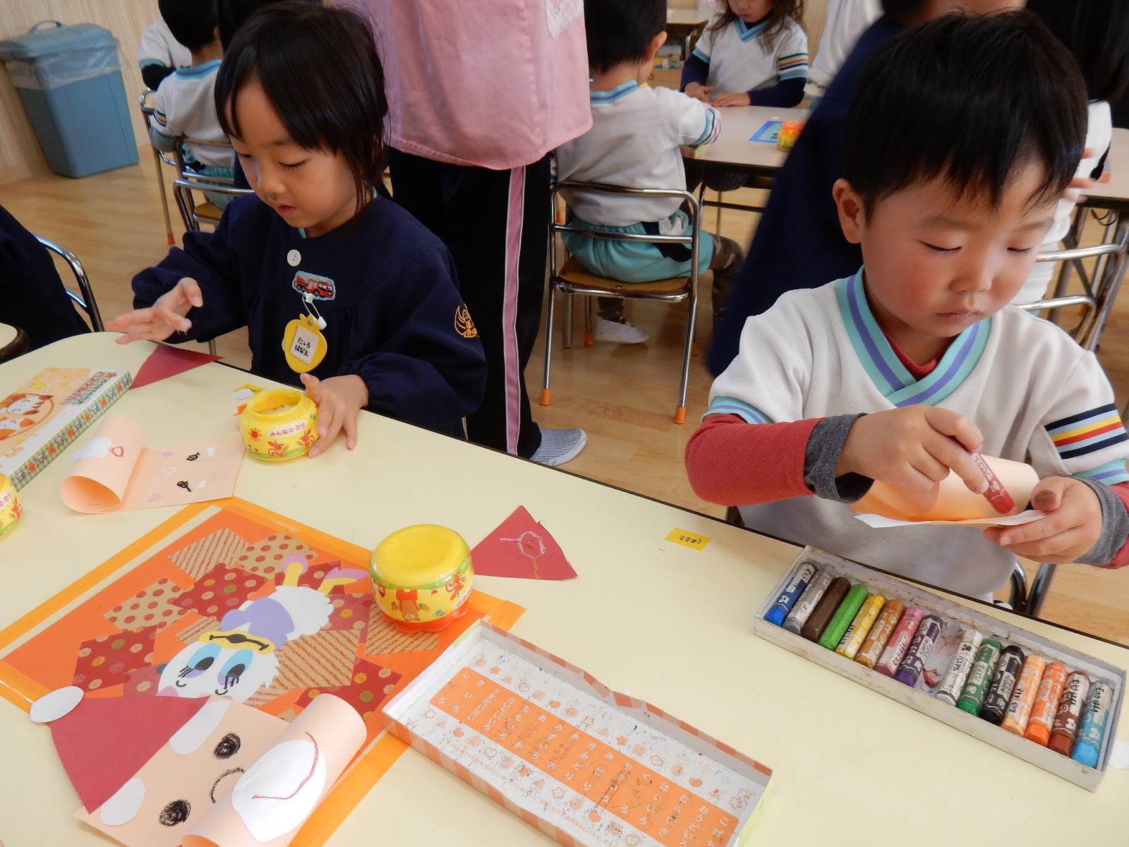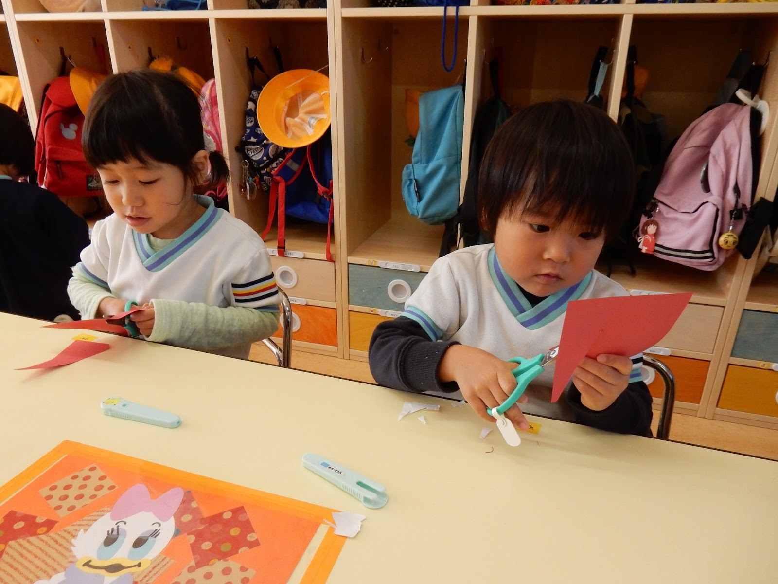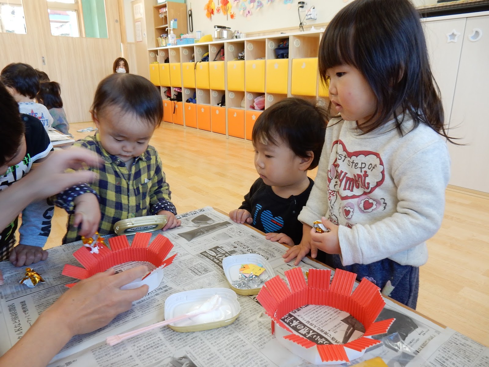 たんぽぽさんと、ひまわりさんはサンタさんを作っていました!それぞれ年齢に合わせた作り方をしているので、素材は同じですが違った作品が完成します。切ったり、貼ったり、描いたりと、いろんな要素が盛り込まれたサンタさん。みんなどんな事を思いながらこの製作をしているんでしょうね!『サンタさんから何もらう?』なぁんていう会話もそろそろ聞こえてきそうですよね!