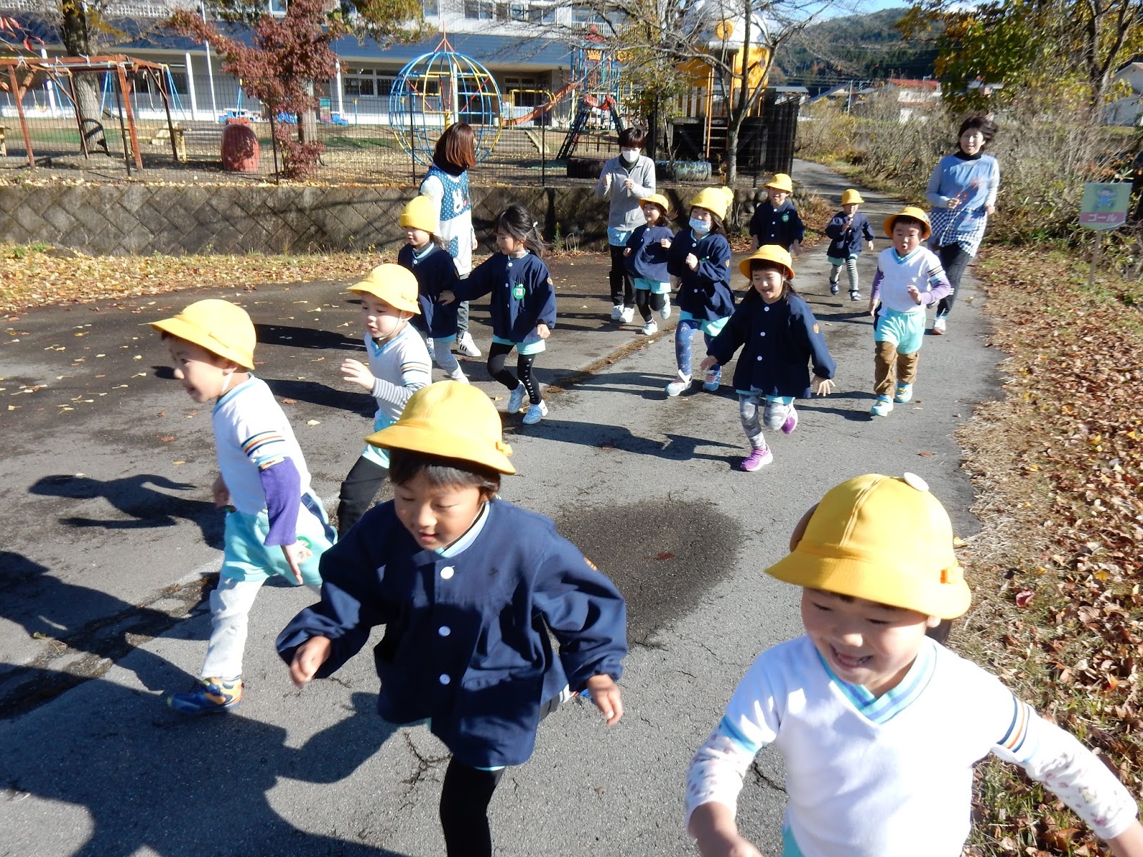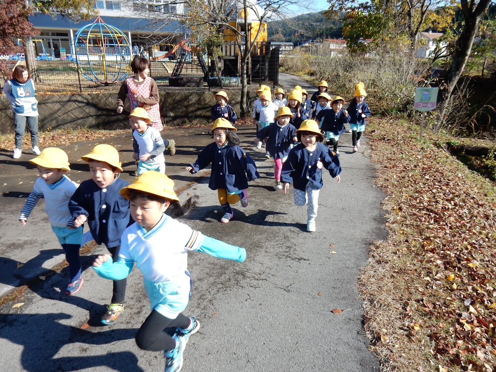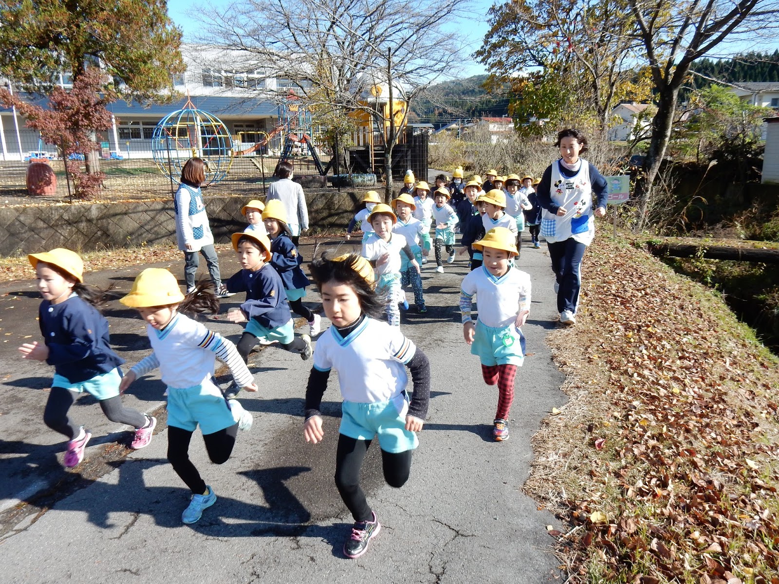 体操の後はマラソン。息が苦しく感じる事もありますが、日々のマラソンで体力作り!そして、身体を動かす事で寒い日も温かいと感じられるようになると、お部屋の中にこもる事もなくなるのでは!?子どもは風の子!元気に外を走り回る姿が可愛らしいですね!