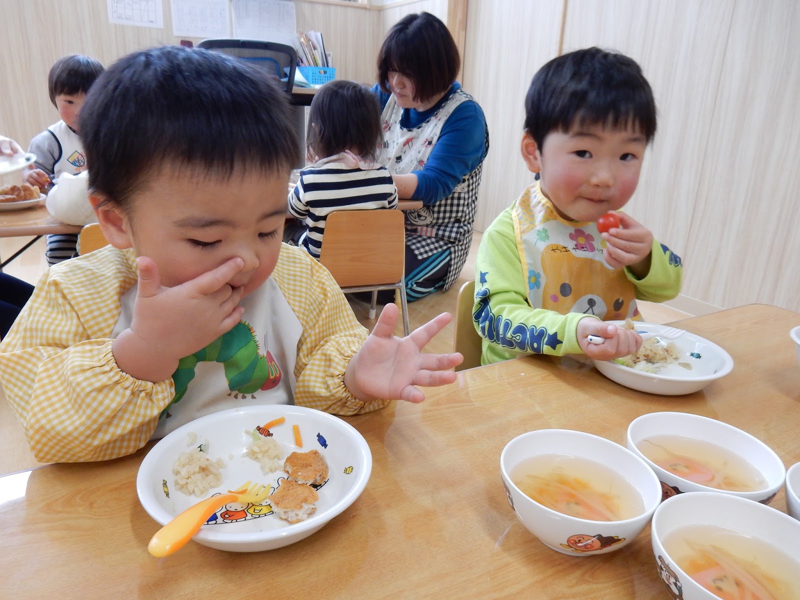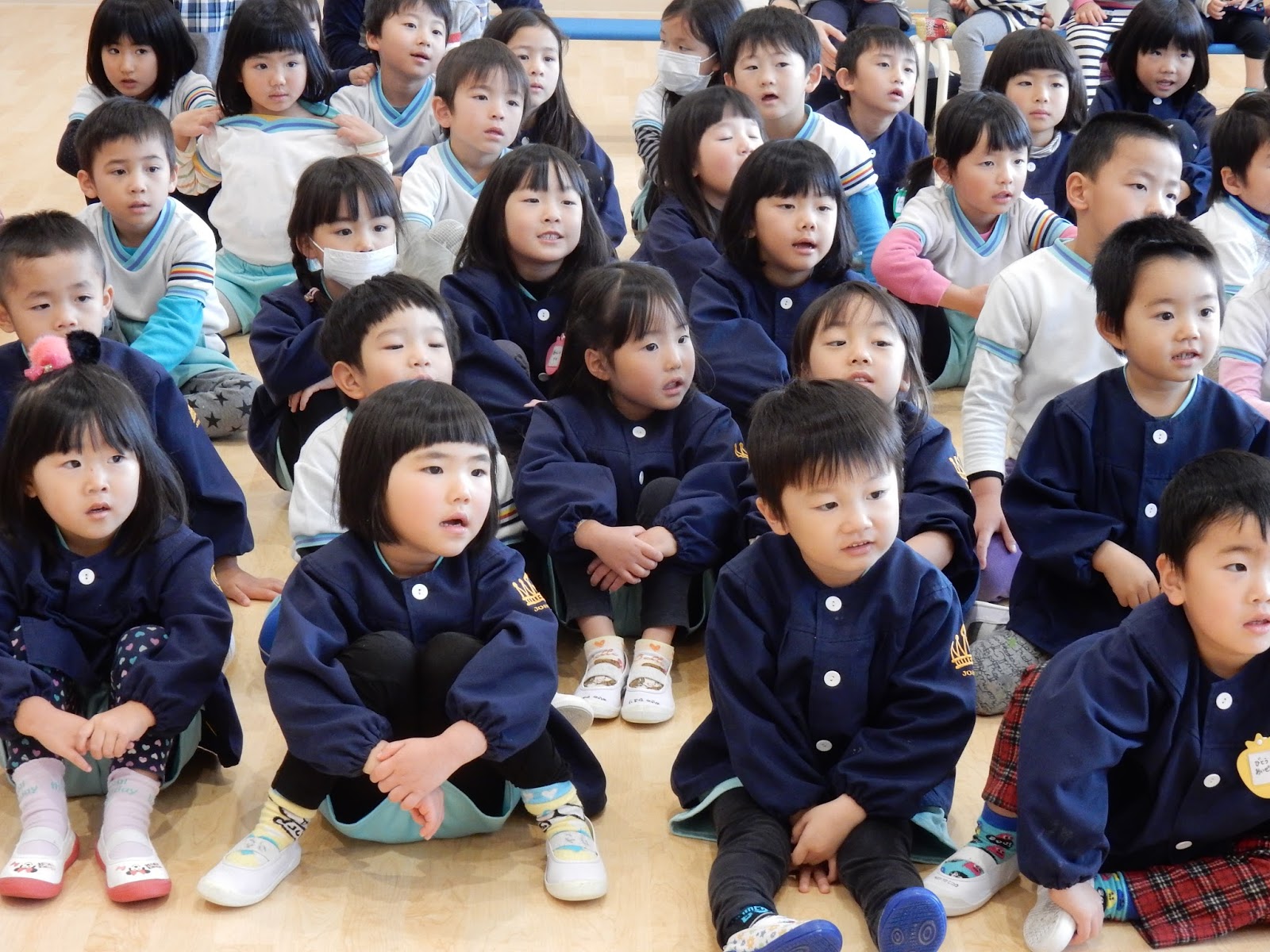 インタビューをされて、名前と年齢を教えてくれました!こんなにたくさんのお友達の前なので、ちょっとドキドキしちゃう子も。小さいクラスのお友達は、ひまわり組のお当番さんがお名前を呼んでくれましたよ!ローソクの火を吹き消して、みんなの元気なお歌でお祝いです!恥ずかしい気持ちもあるけど、お友達にお祝いしてもらうって、やっぱり嬉しいですね!