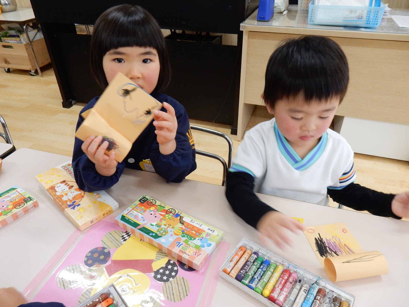 たんぽぽさんもトナカイを作っていました。クレヨンで顔を描いて、真っ赤なお鼻をつけたら完成です!着々と、クリスマスに向けて準備が進んでいます♪
