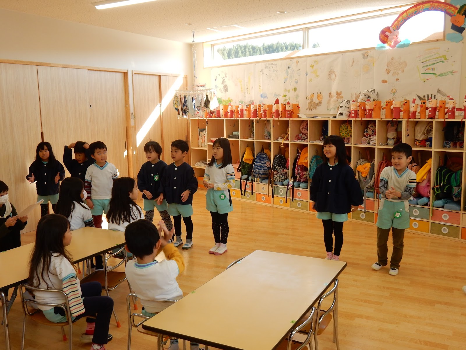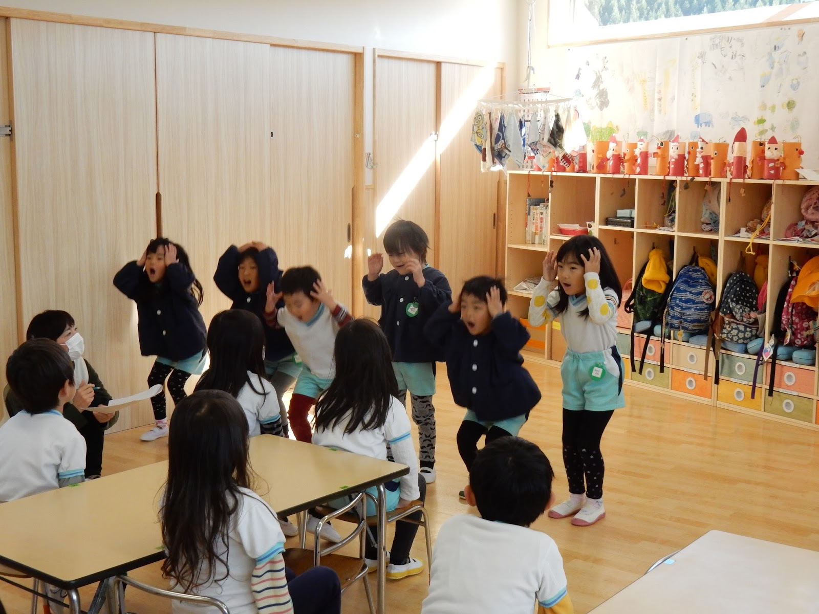 ひまわりさんは、お部屋で英語劇の練習をしていましたよ!セリフを少しずつ覚えて、振りつけも簡単なものからつけて。難しいですが、先生に助けてもらうことなく自分のセリフを言えた時の子ども達の嬉しそうな顔!達成感にみちています!まだまだお部屋の中での練習ですが、本番は会場の皆さんまで届く大きな声で演じるのが目標です!頑張ろうね!