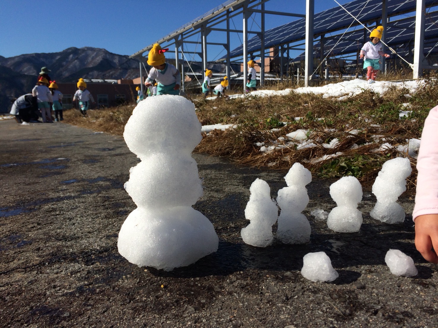 うわぁぁ!!並んだ、並んだ!小さな可愛らしいゆきだるま!にこにこのすみれさんと一緒にハイポーズ!もう少ししたら、大きな、大きな雪だるまが作れるようになるかな~♪