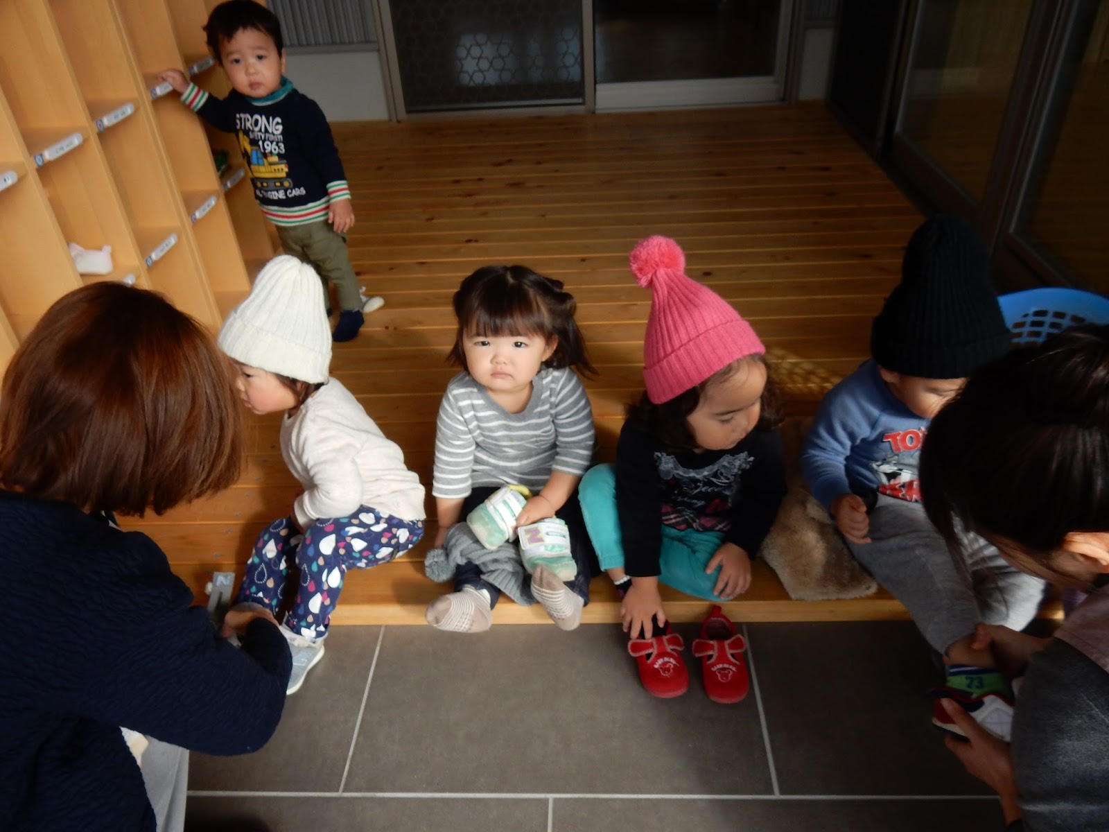 ひよこさんは、今からお外へ行きま~す!さあ、おくつをはきますよ~