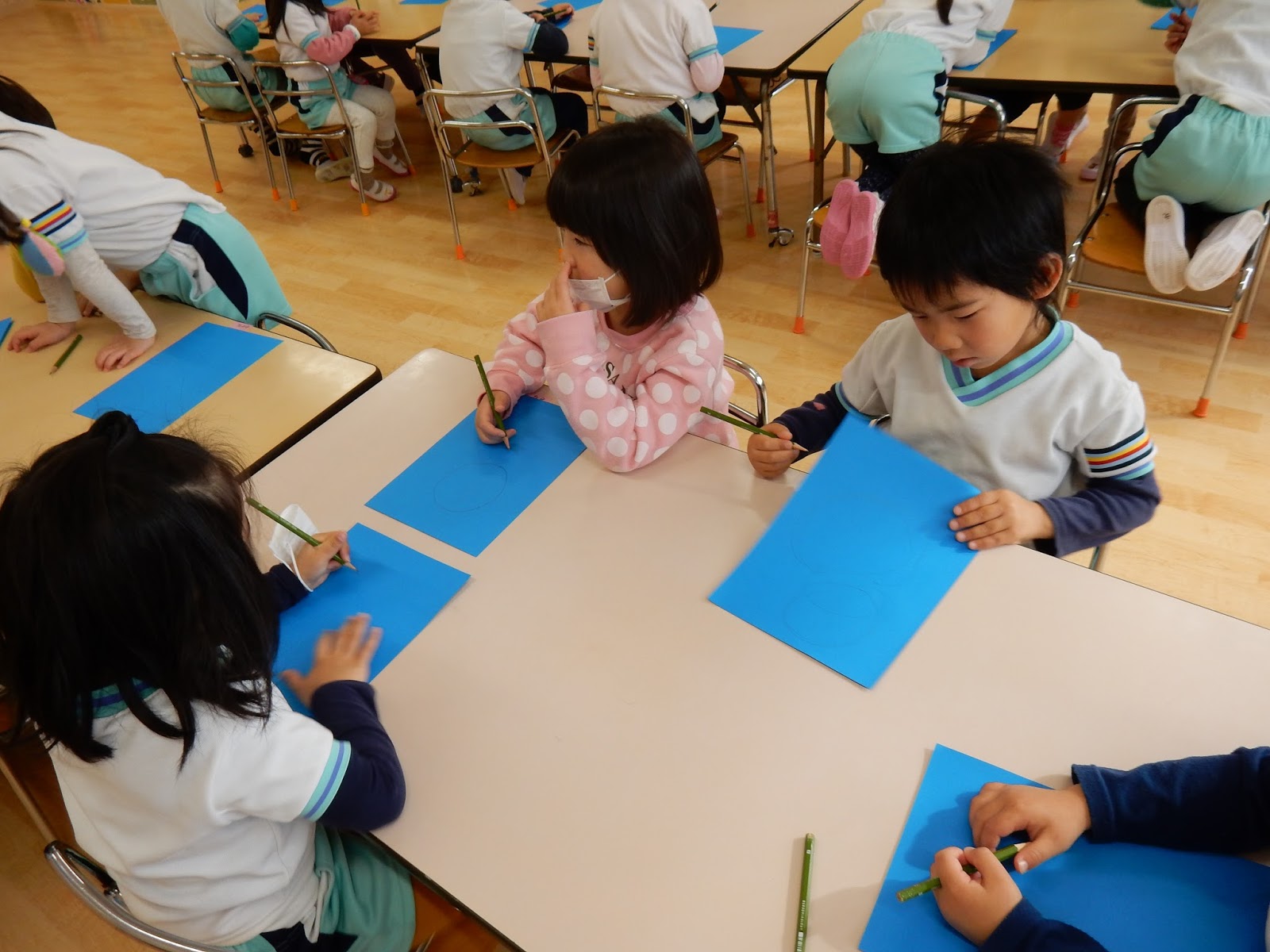 今日は、ここまで・・・次回はゆきだるまさんの顔を描くのかな・・・どんな顔のゆきだるまさんができあがるか、楽しみですね!