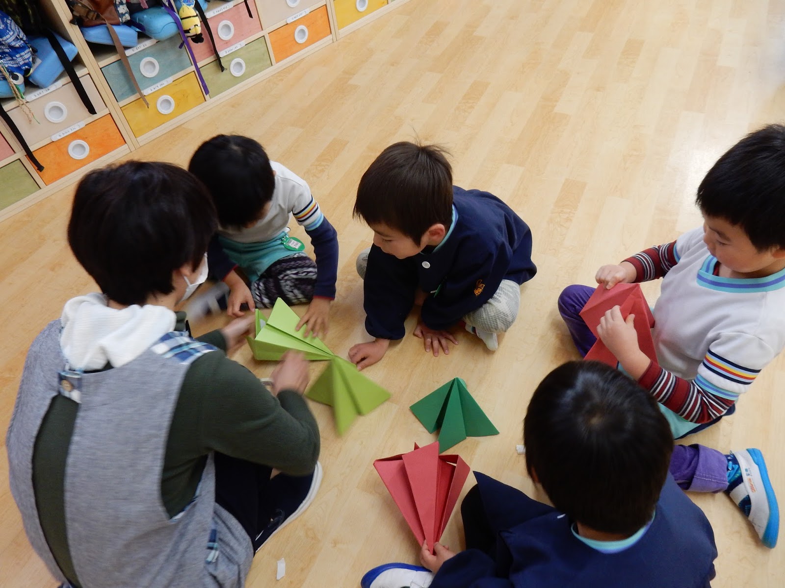 たんぽぽさんは、いろおにごっこを始めるよ~!!三島あやか先生がおにだよ~! みんなで大きな声で「おにさん!おにさん!何色ですか?」