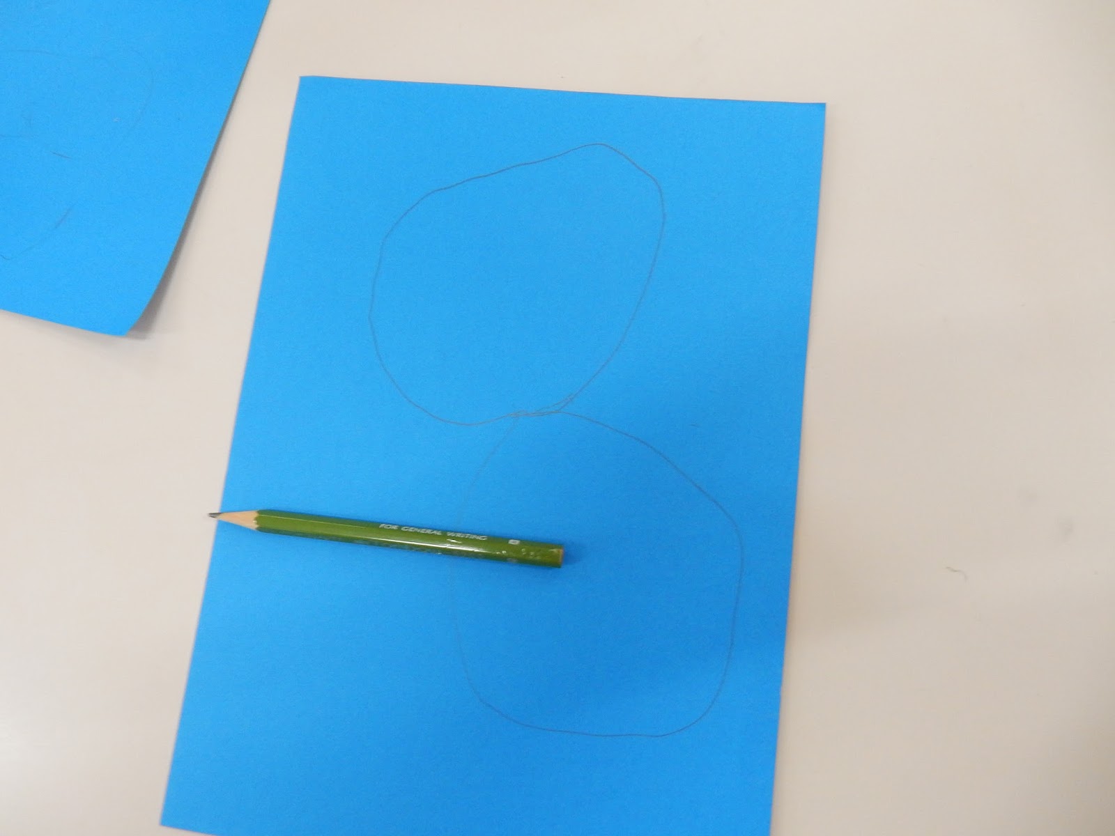 まるを2こ描いて・・ この形は・・・・ゆきだるまかな。