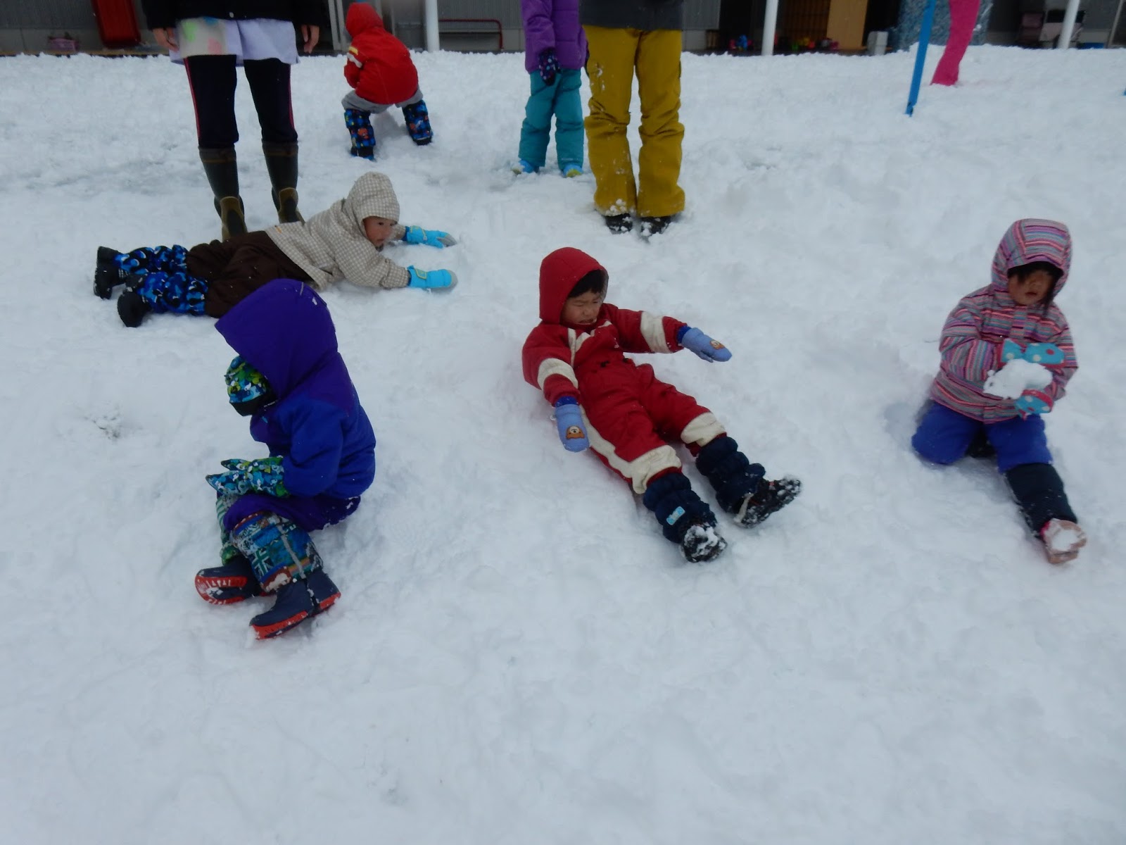 今年初めての雪遊び、子ども達はとっても楽しそうに♪ニコニコ笑顔で楽しみました!朝、雪が積もっていると、はぁぁぁ…とため息をついてしまいそうになりますが、こんな子ども達の笑顔を見ると、雪もいいかな♪と思えます!園庭だけ、たっぷり積もってくれるのが1番なんですが!(笑)
