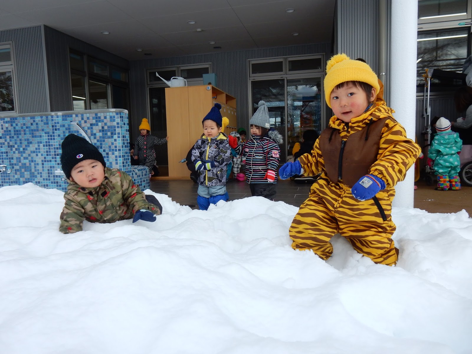 夏にプール遊びの話題が中心になるように、この時期のブログは雪遊びの話題が大半を占めます(笑)今日は、時間をずらしながら全クラスが外で雪遊びを楽しむことができました♪