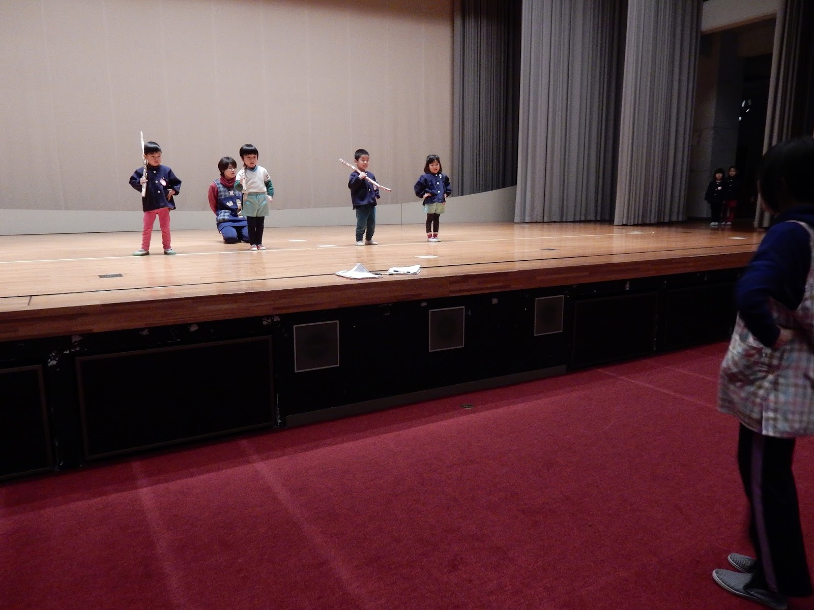 舞踏劇と、お遊戯に分かれて出演するたんぽぽさん。まずは劇のお友達から。今日は、立ち位置の確認をしたり、ステージの距離を確認して、実際に子どもたちが移動できるかを試したり。限られた時間の中で順番に立って踊ってみました。いつもホールで練習している子ども達。出番になって、舞台のそでから中央へ出てくるまでに思ったより距離があったり、音楽に間に合わなかったり!確認することで、明日からの練習へと活かすことができる発見がたくさんありました!