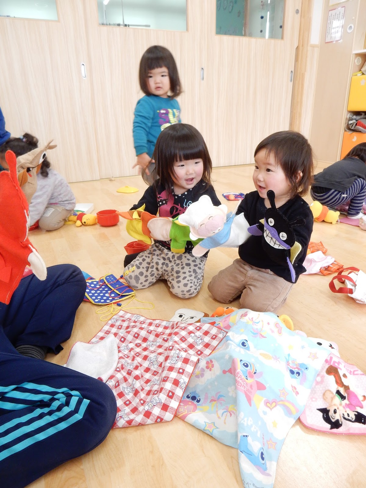 みんなが避難訓練をしている間、0歳児の小さいお友達は、ゆったりお部屋でおもちゃ遊び。そこに、元気いっぱいの1歳児さん達も戻ってきました!静かに遊ぶ空間、にぎやかな空間。それぞれに良さがあり、毎日いろんな刺激を与えたり、もらったり…♡お互いに成長しあっています♪