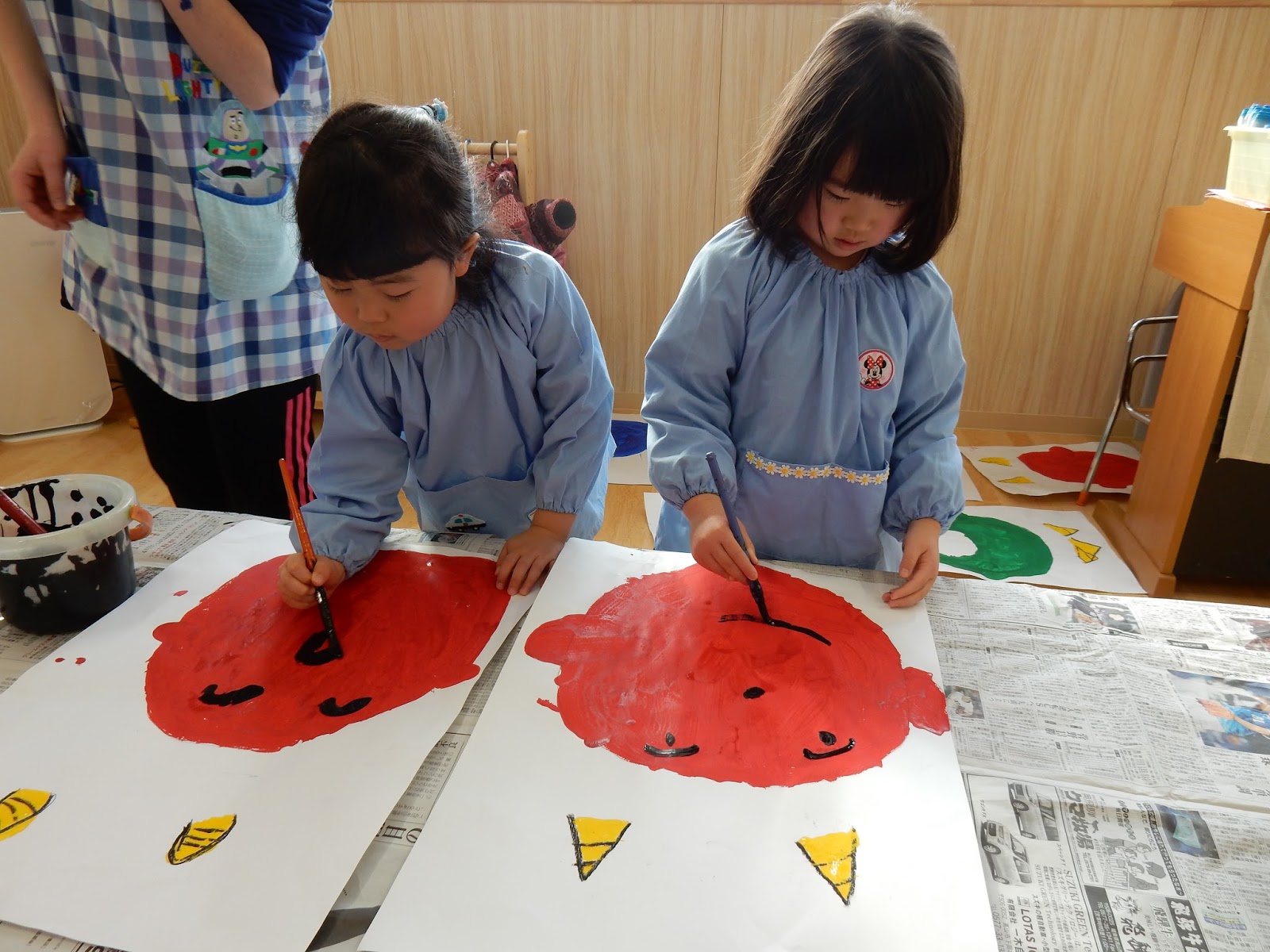 節分に向けての製作も楽しんでいます!絵の具を使ってダイナミックにお絵描きです!泣き虫鬼、いじわる鬼…いろんな鬼のお話を聞くけれど、みんなの中にはどんな鬼がいるかな!?(笑)