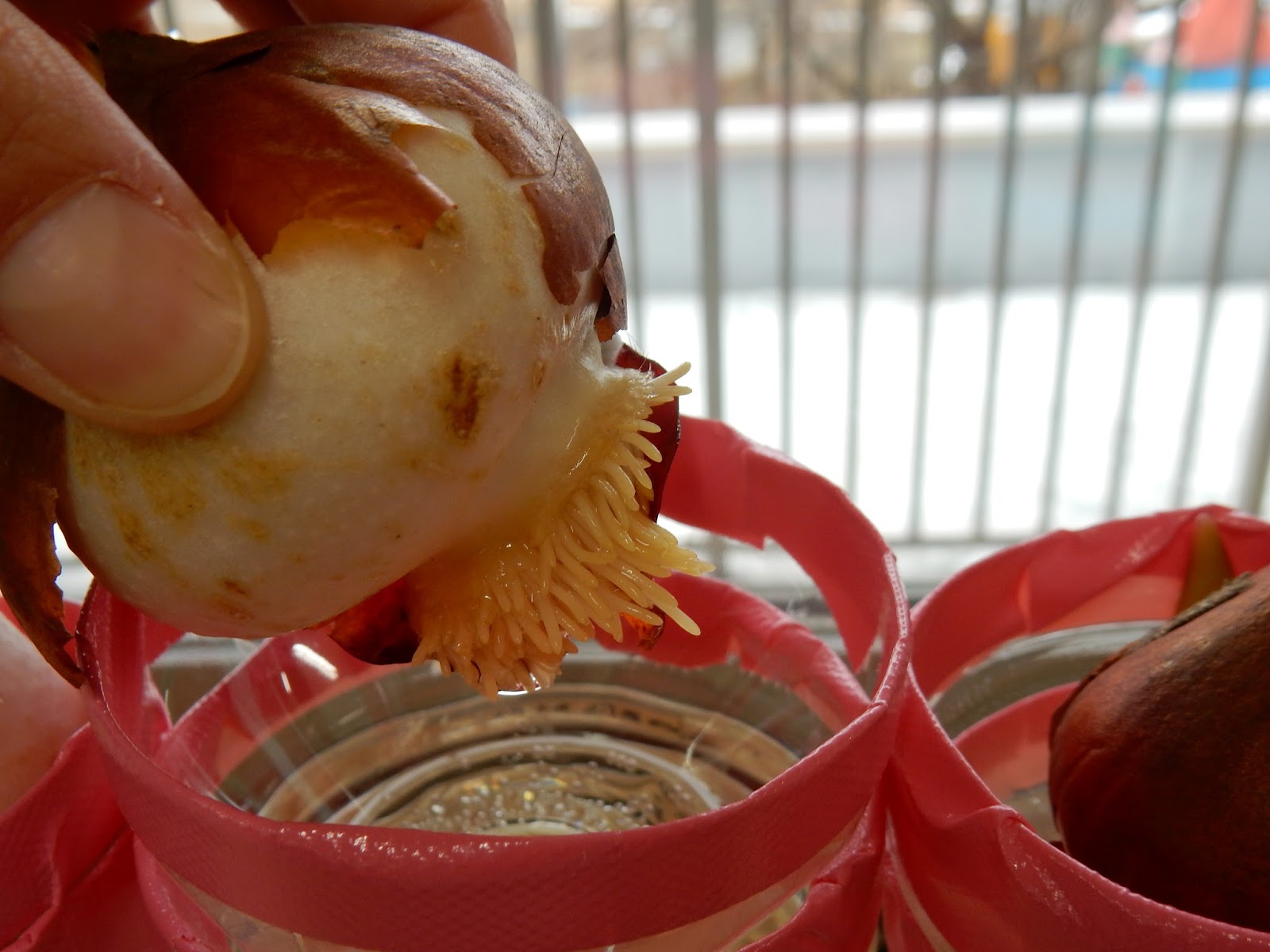 暖かかった週末。ひまわりさんの球根からはこんなに根っこが伸びていました!『すごーい!!』という感動と同時に…『気持ち悪い…』という本音も飛び出していました(笑)今週は寒そうなので、お部屋の中でぬくぬく育ってね♪