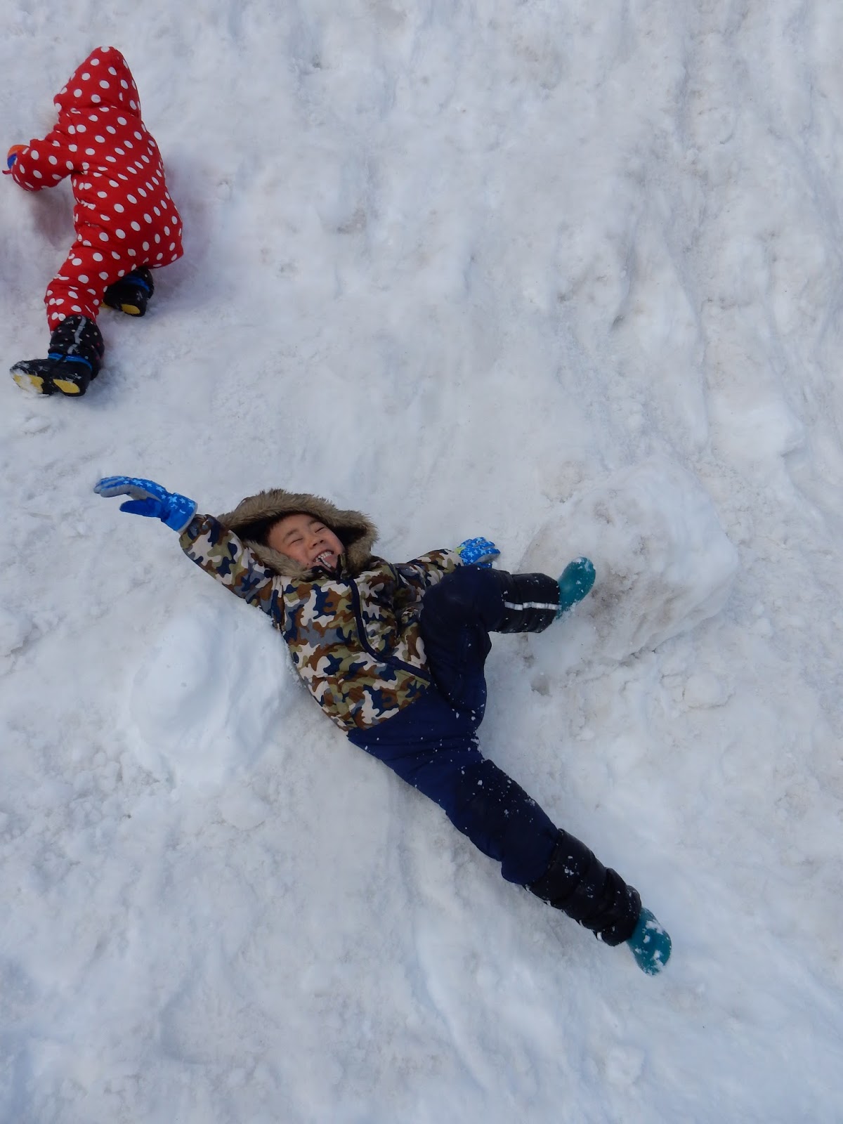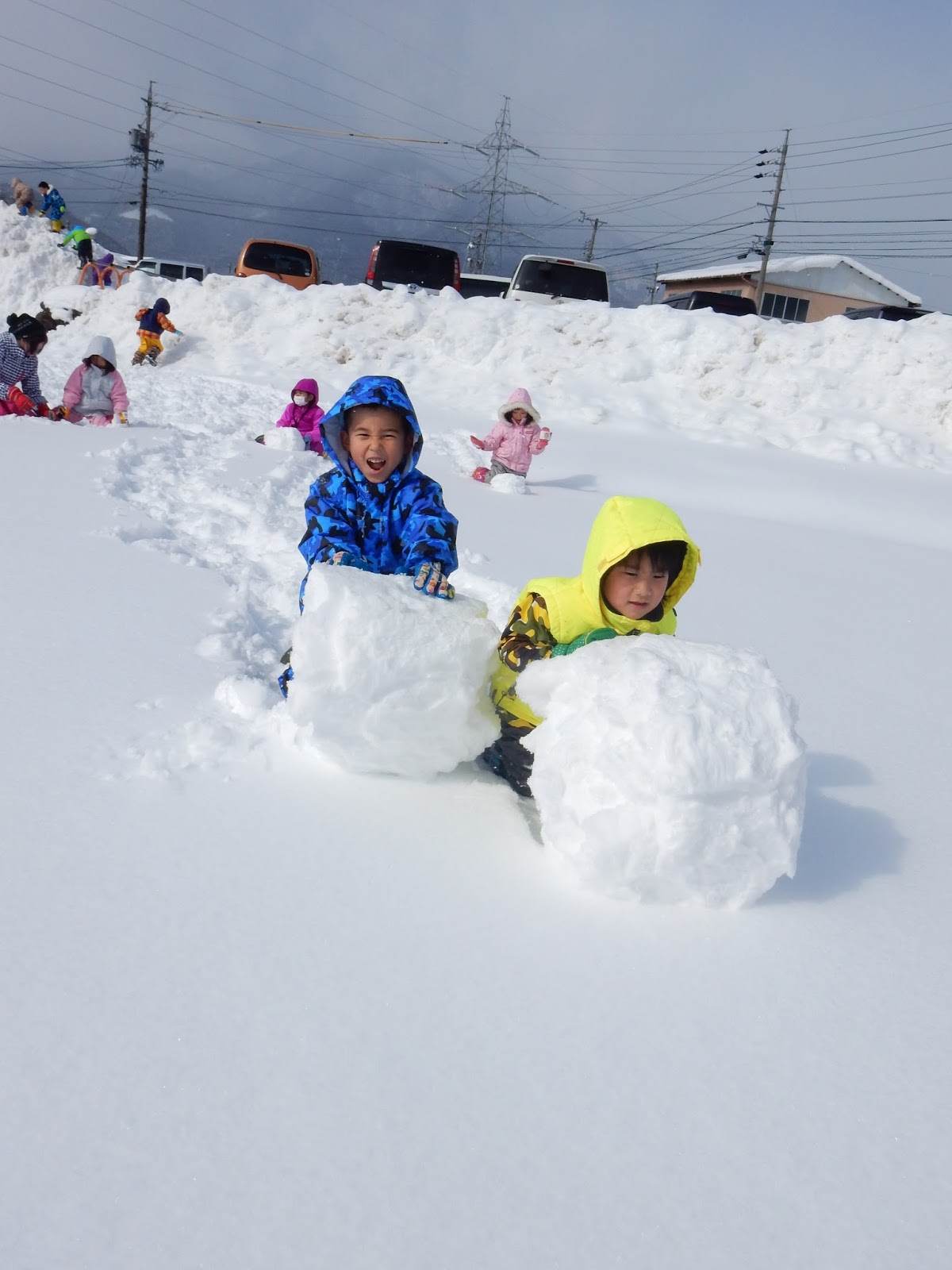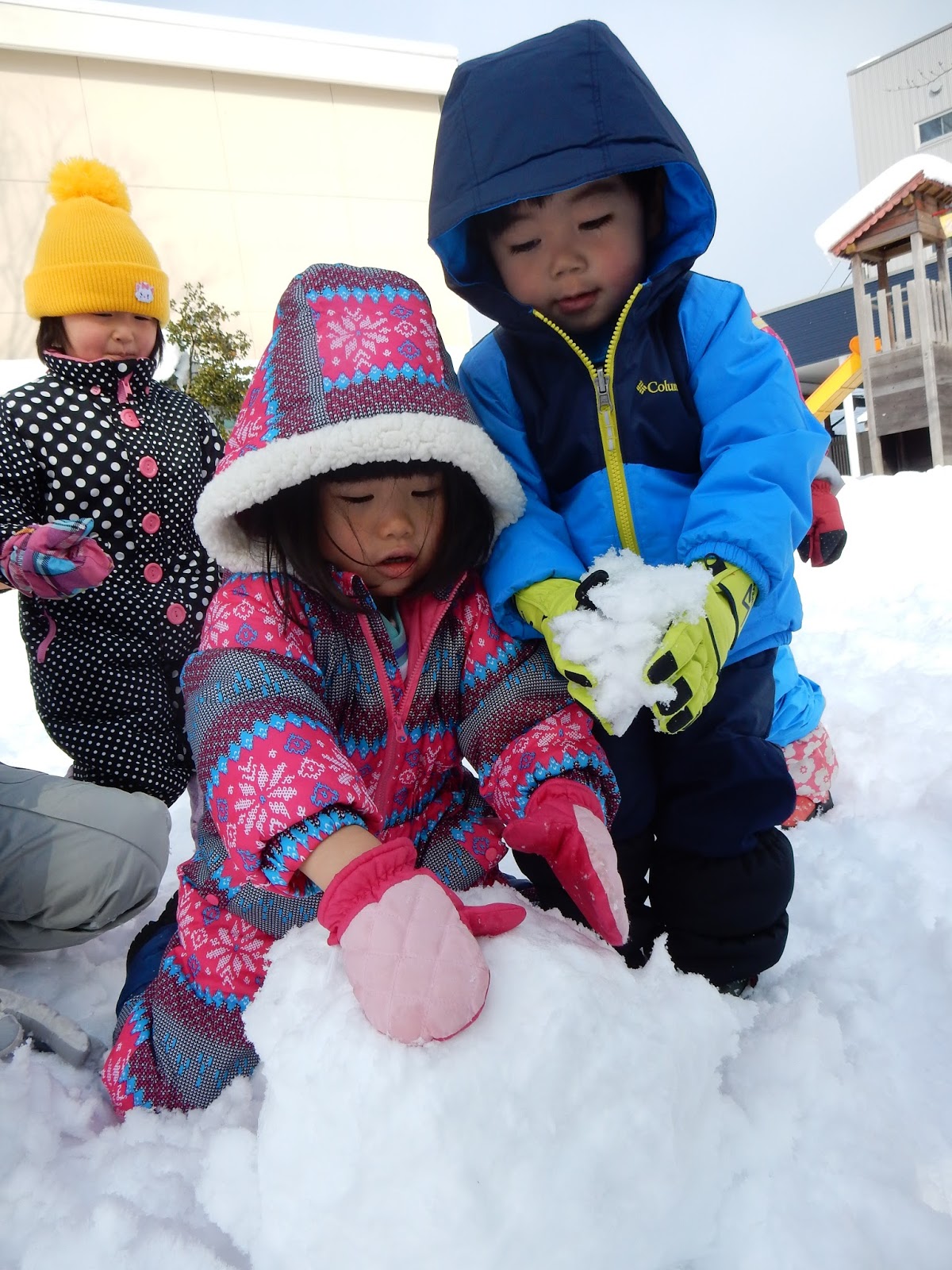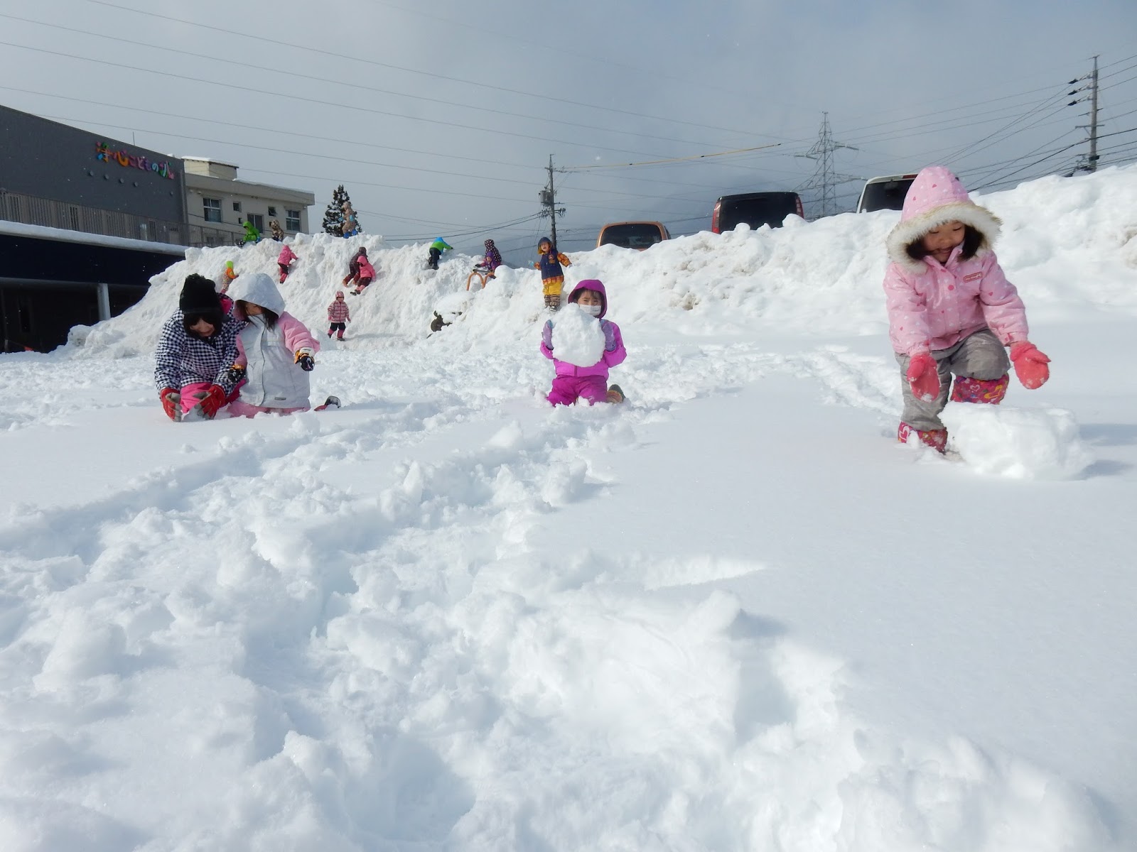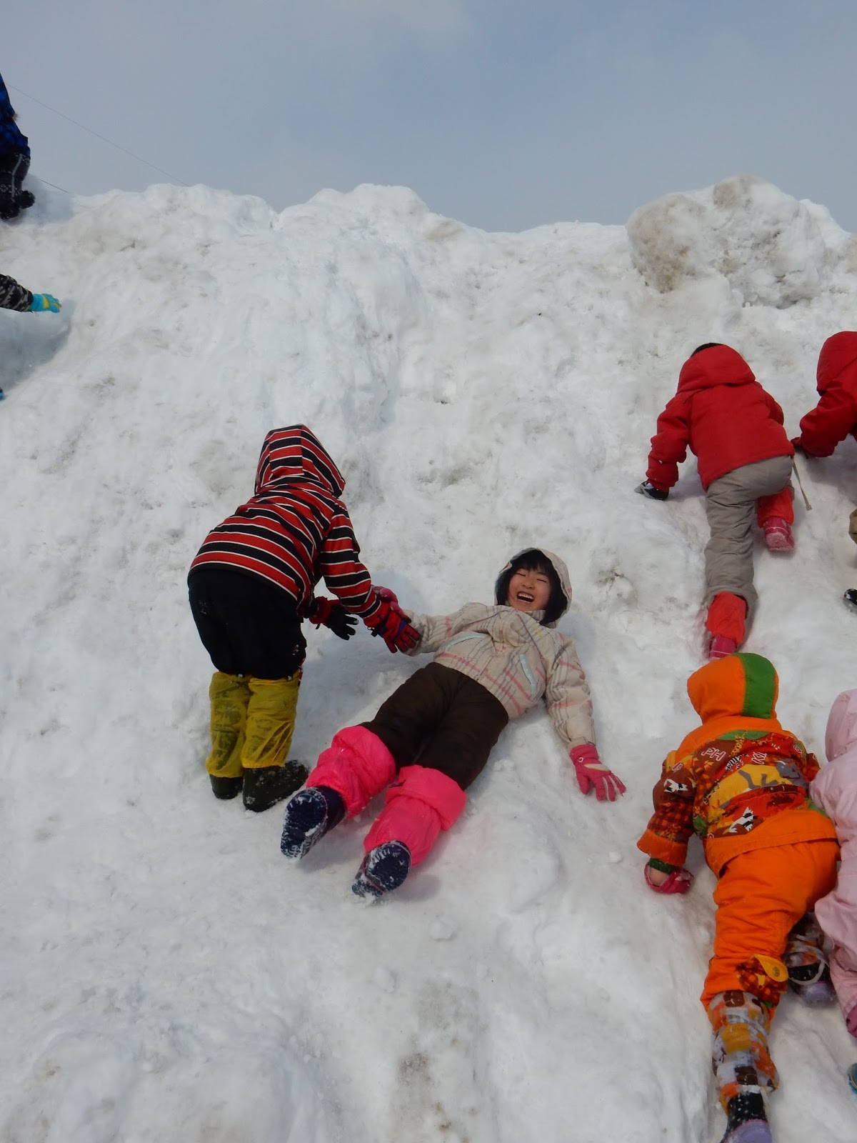 遊びの中で、子ども達は様々な工夫をしています。どうしたら、滑らずに登れるか。どこを滑ればお尻が痛くないか。どうやったら固い雪玉ができるか。大きくなった雪玉を移動させるにはどうしたらいいか…お友達と仲良くそりを使うにはどうしたらいいか…一生懸命考えても、上手くいったり、いかなかったり。そんなことを繰り返しながら、多くの事を学んでいるんでしょうね!たかが遊び、されど遊び!子ども達にとって、遊びは立派な学習です!さぁ、明日も思いっきり遊びましょう!!!