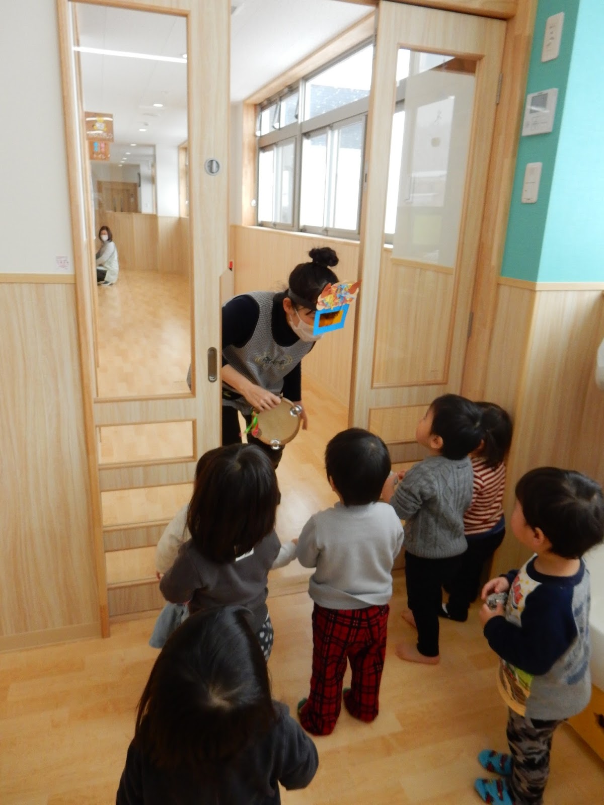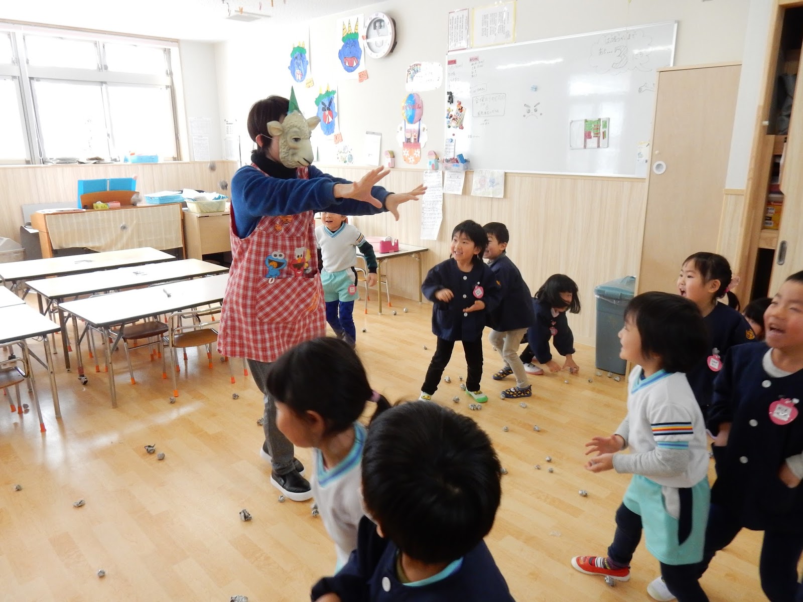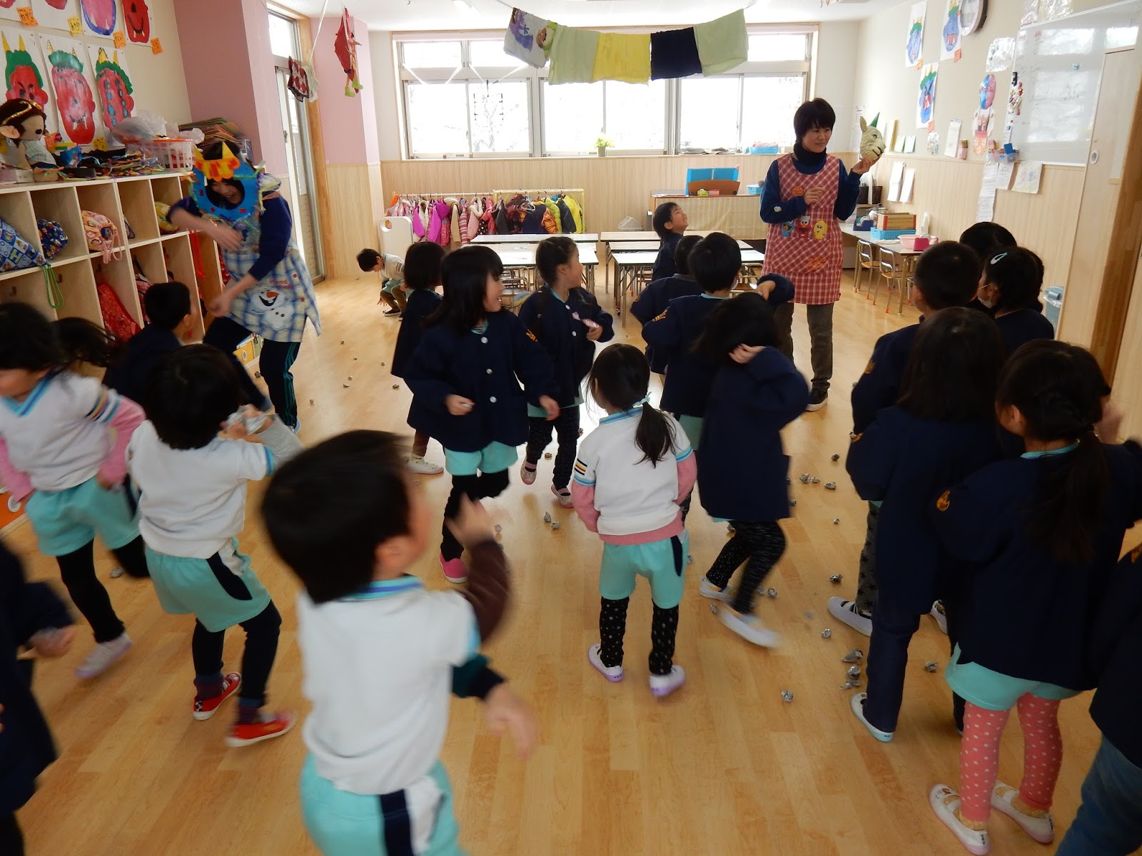 ん!?ゆりさんのお部屋には、変わった鬼さんも現れたみたい!『めーめー!!』と言いながら近寄ってくるヤギ鬼…実はこっちの方が怖かったりして…(笑)こちらも大盛り上がり!投げたボールは、明日のために、1つ残らずみんなで集めました!