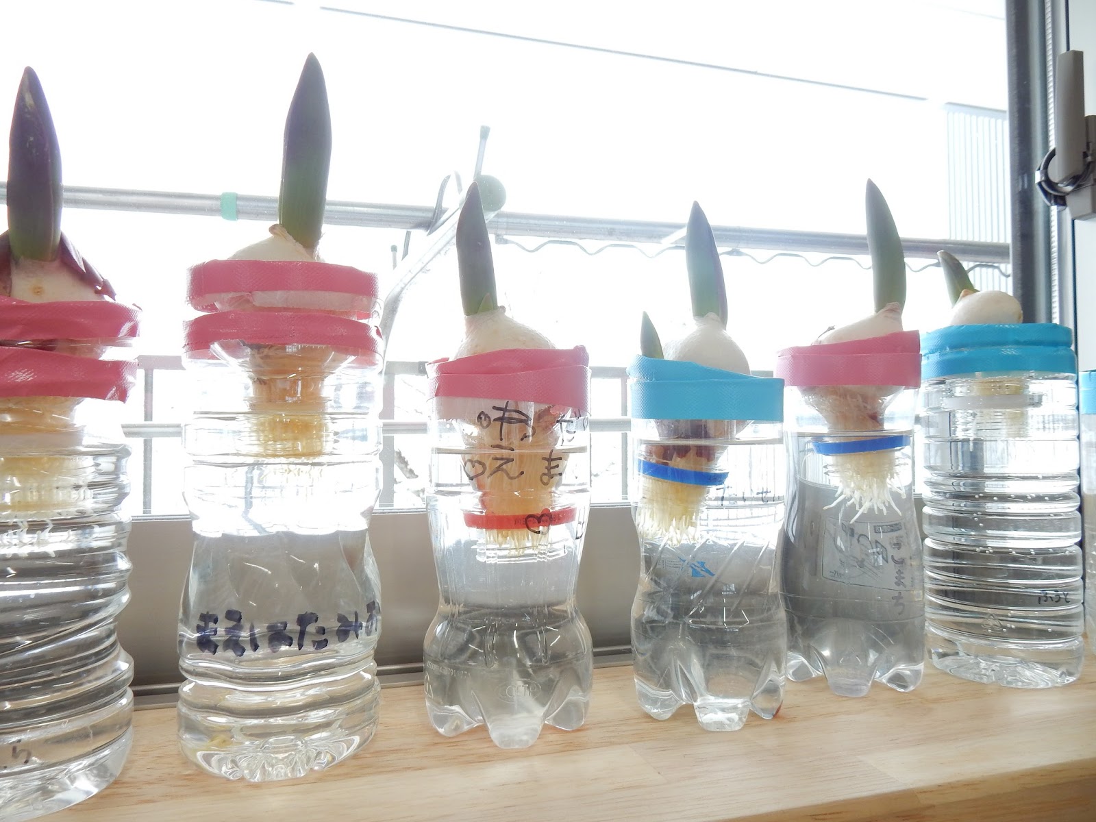 毎日寒い日が続きますが、ひまわりさんが育てているチューリップは、順調に育っています。根っこも、芽も、こんなに伸びてきましたよ!今日で1月もおしまいですね!