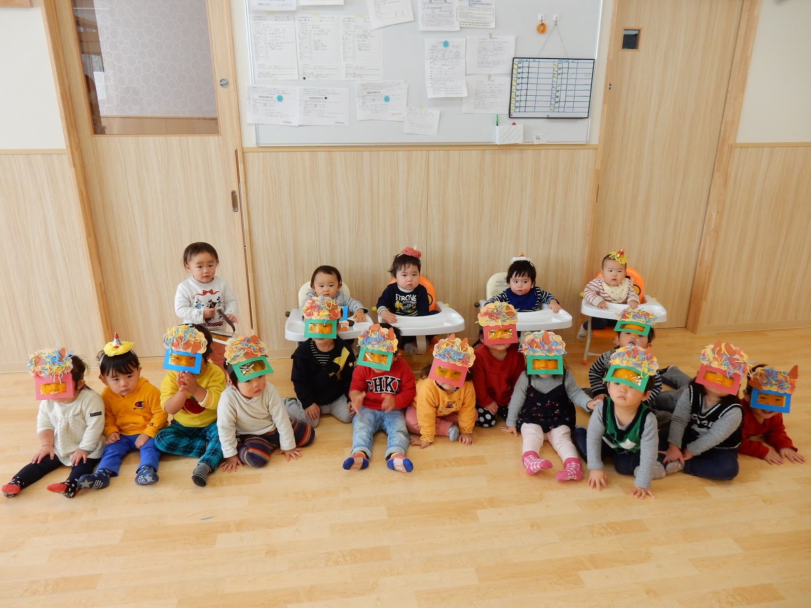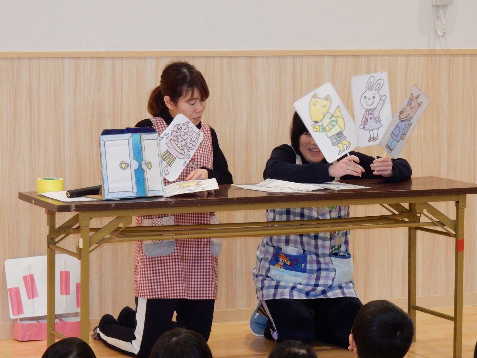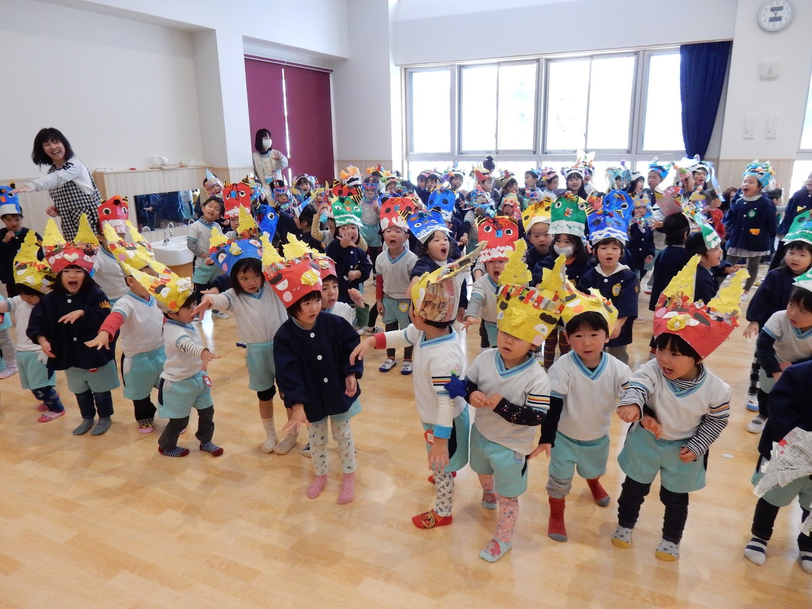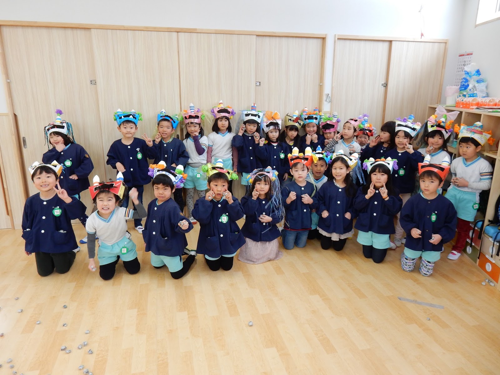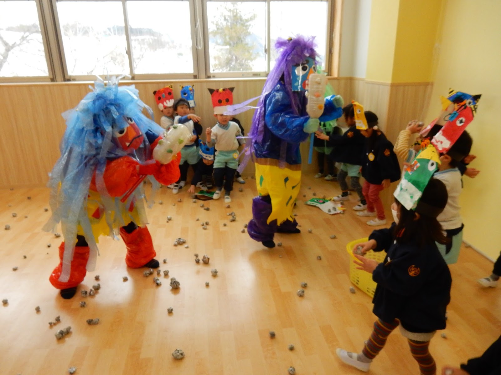 “なきむし鬼” “いじわる鬼” “好き嫌いしちゃう鬼”…心の中にいる鬼さんを退治することができたかな!?今日は、かわいらしい豆をお土産に持ち帰ります。今日のお話をしながら、ご家族で召しあがって下さいね。年の数より1つ多く食べるといいんですって!みんなが健康に日々を過ごせますように!