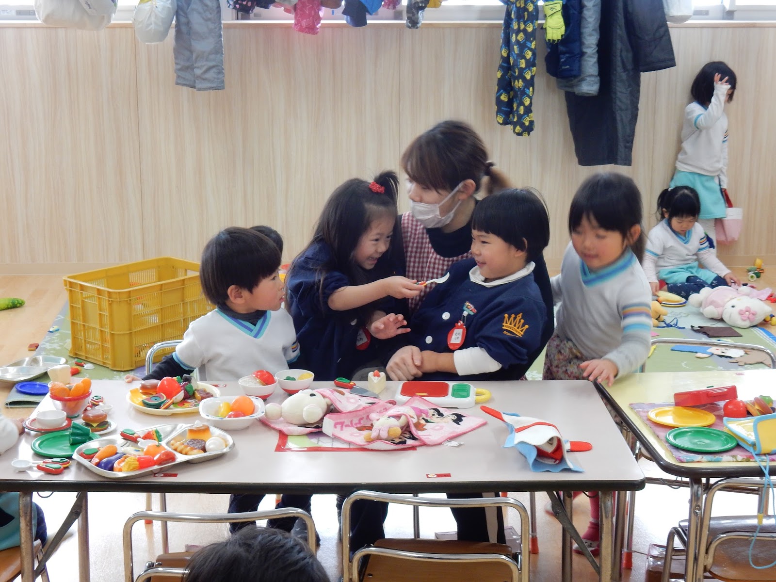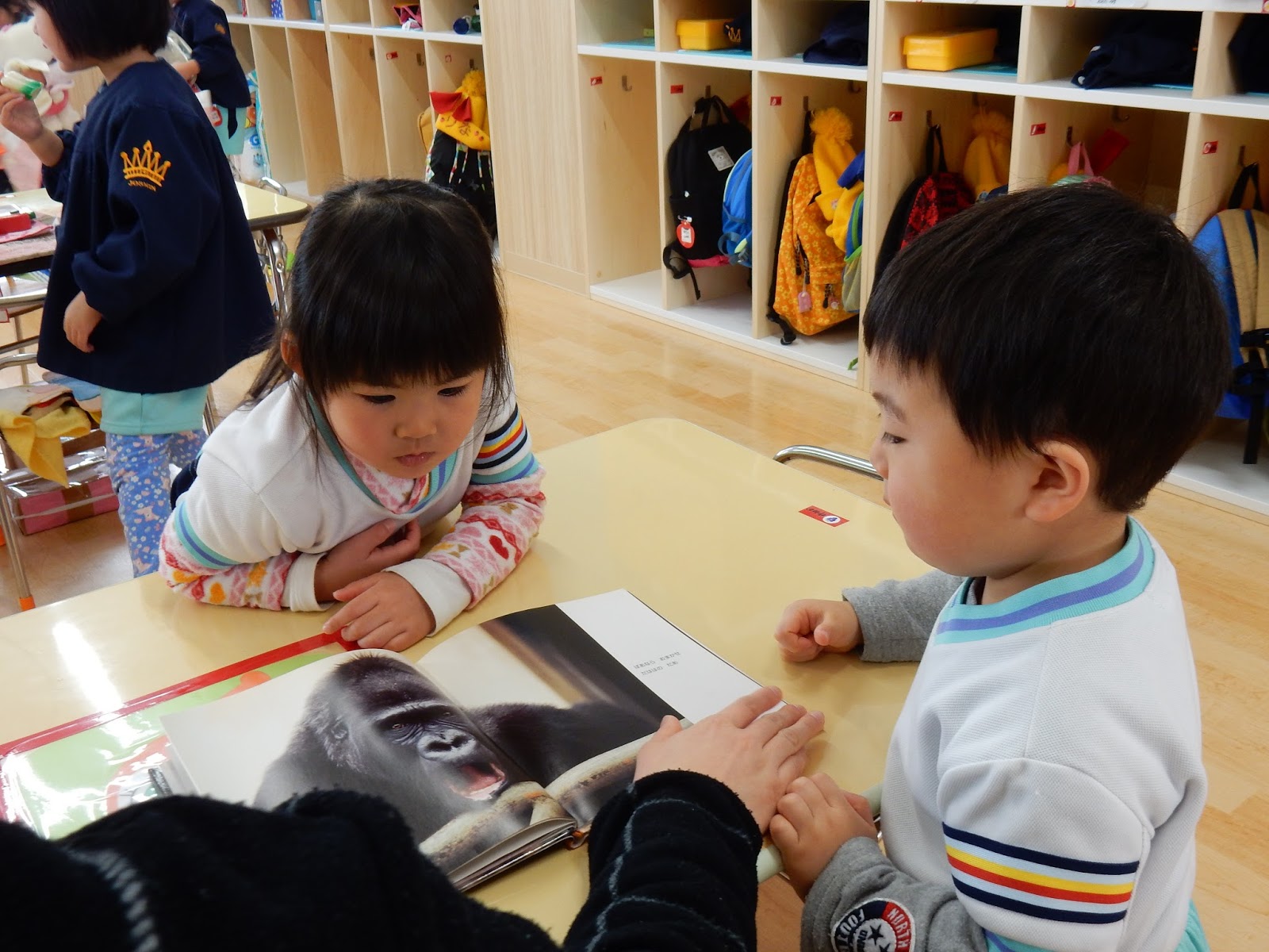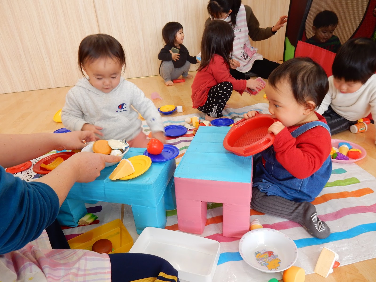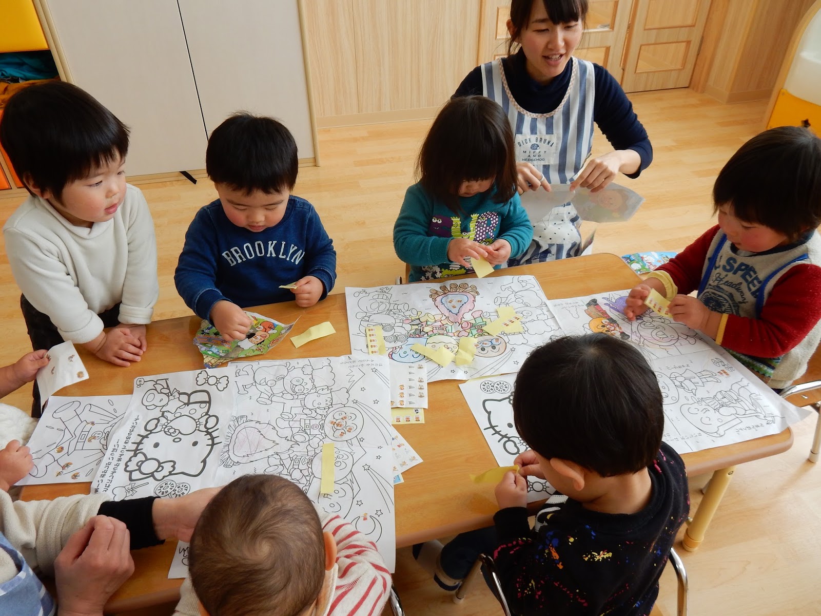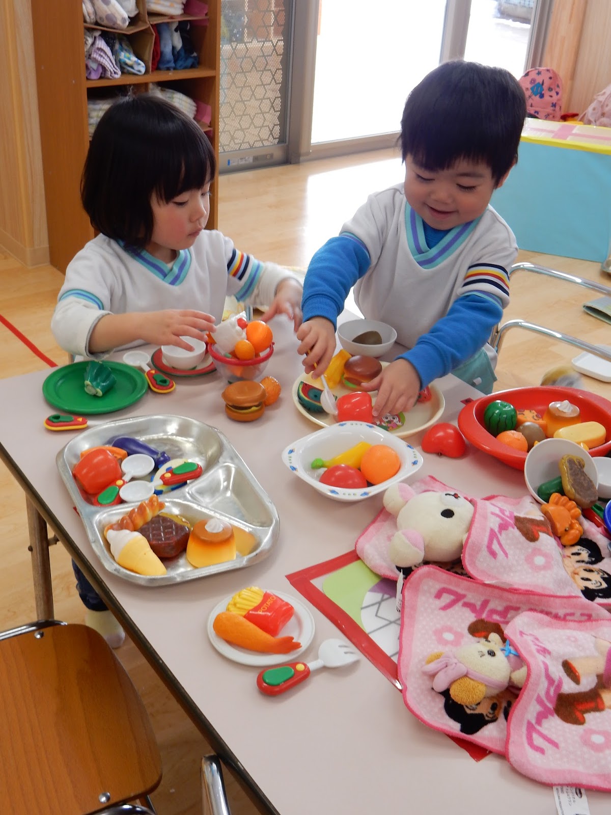 ひよこさんや、すみれさんが外に遊びに行ったら、きっと今日は埋まってしまったでしょうね(笑)小さいクラスのお友達は、お部屋で楽しく遊びましたよ。お友達と一緒に仲良く遊べるようになってきたので、おままごとも楽しいです♪絵本も、1人でじっくり読む時間も楽しいですが、絵を見ながら先生やお友達とお話が弾むのもまた楽しいですね!お帳面のシール貼りで、指先を毎日使うひよこさんも、じっくりお椅子に座ってシールぺたぺた。いつもは1つずつですが、今日はたくさん貼れたかな!