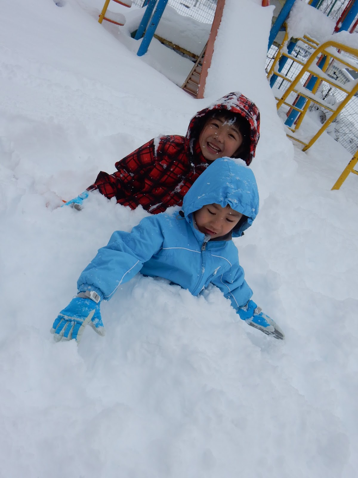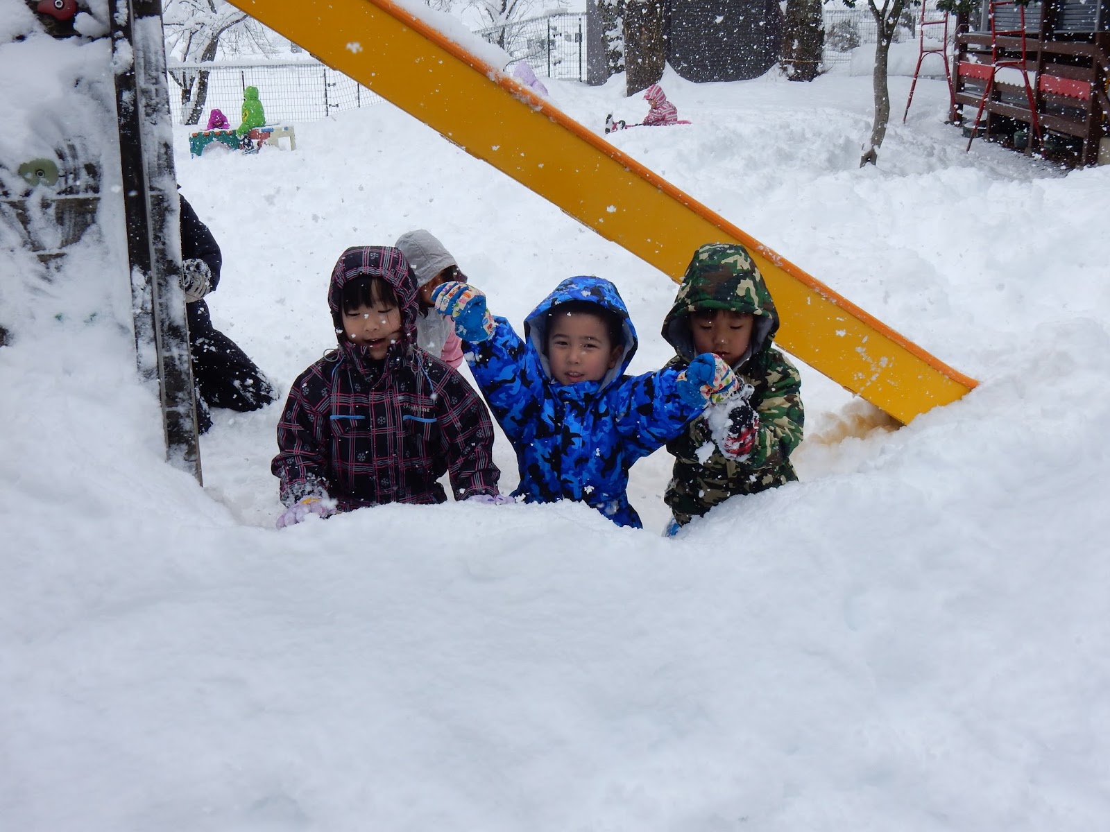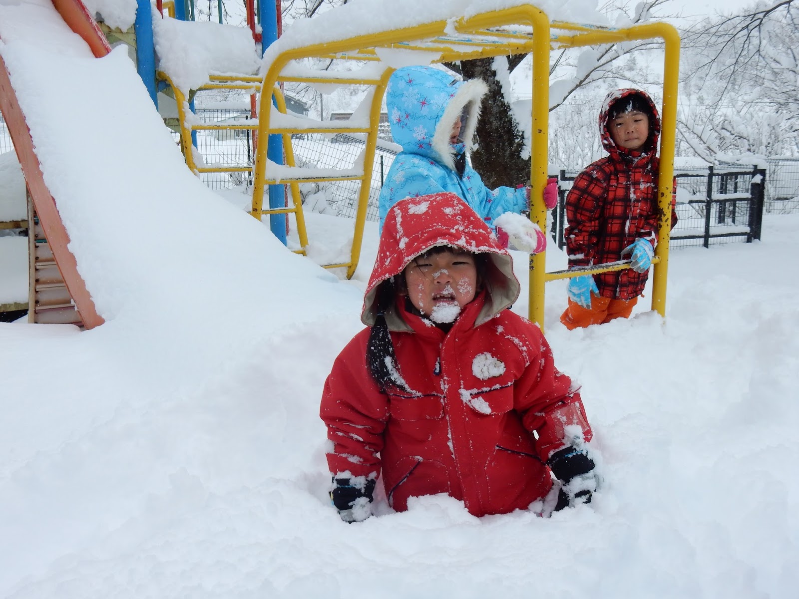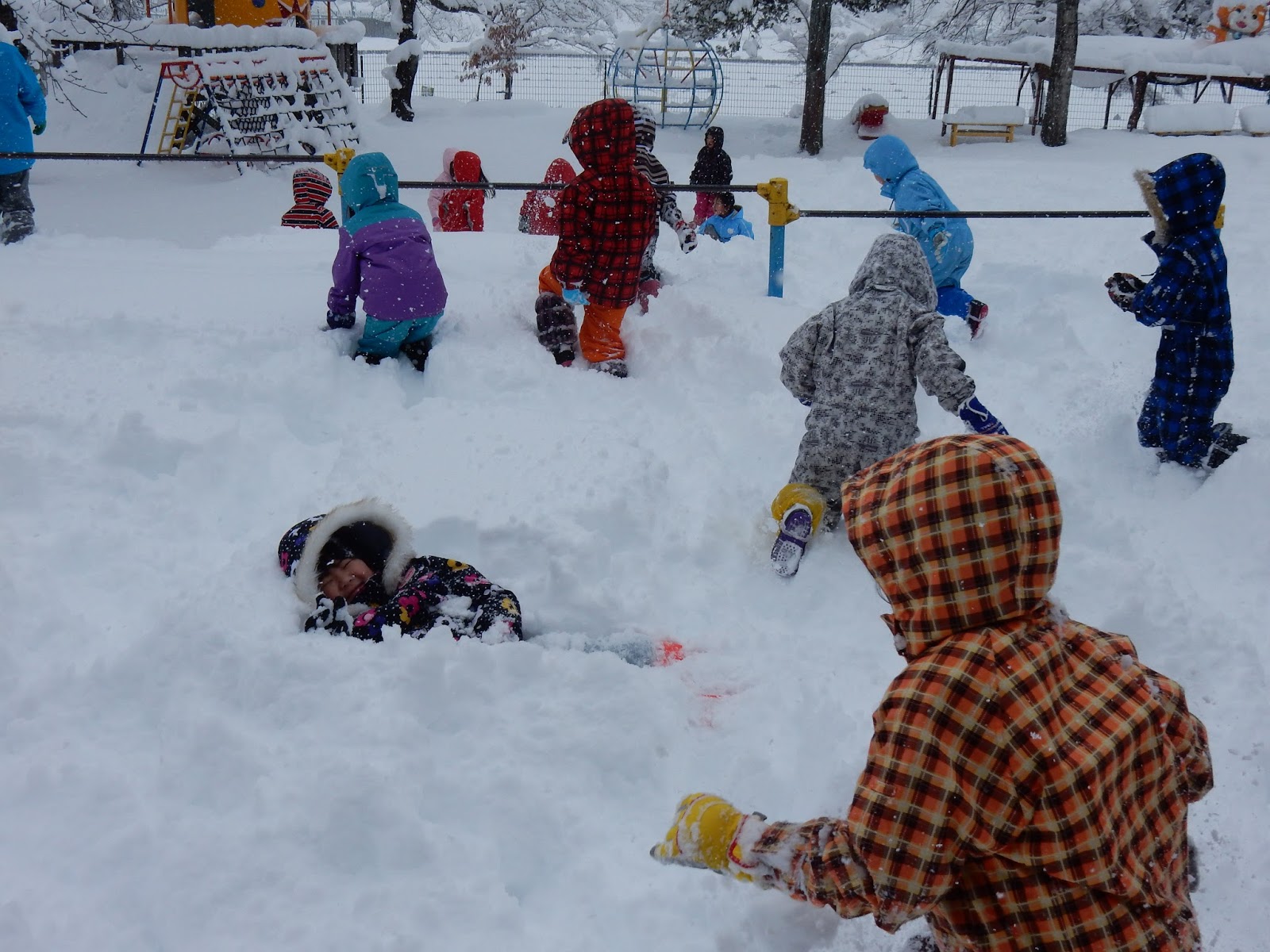 今年は雪がたくさん降りますね…近年は、降ってもあまり積もらなかったり、すぐ溶けてしまったりと、なかなか思うように遊べない年が多かったように感じますが、今年は降っては積もり、また降って…と子ども達にとっては、ゆきあそびが長く楽しめる年です。