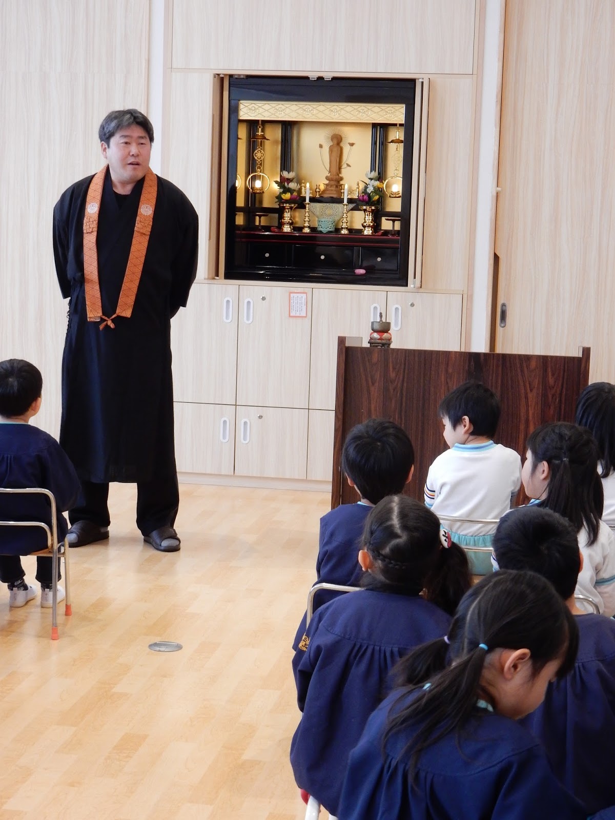 2月に4回計画されているおつとめ。園長先生からお経を教えていただきます。ただ単に、浄心こどもの城は仏教園だから!という理由ではないんです。