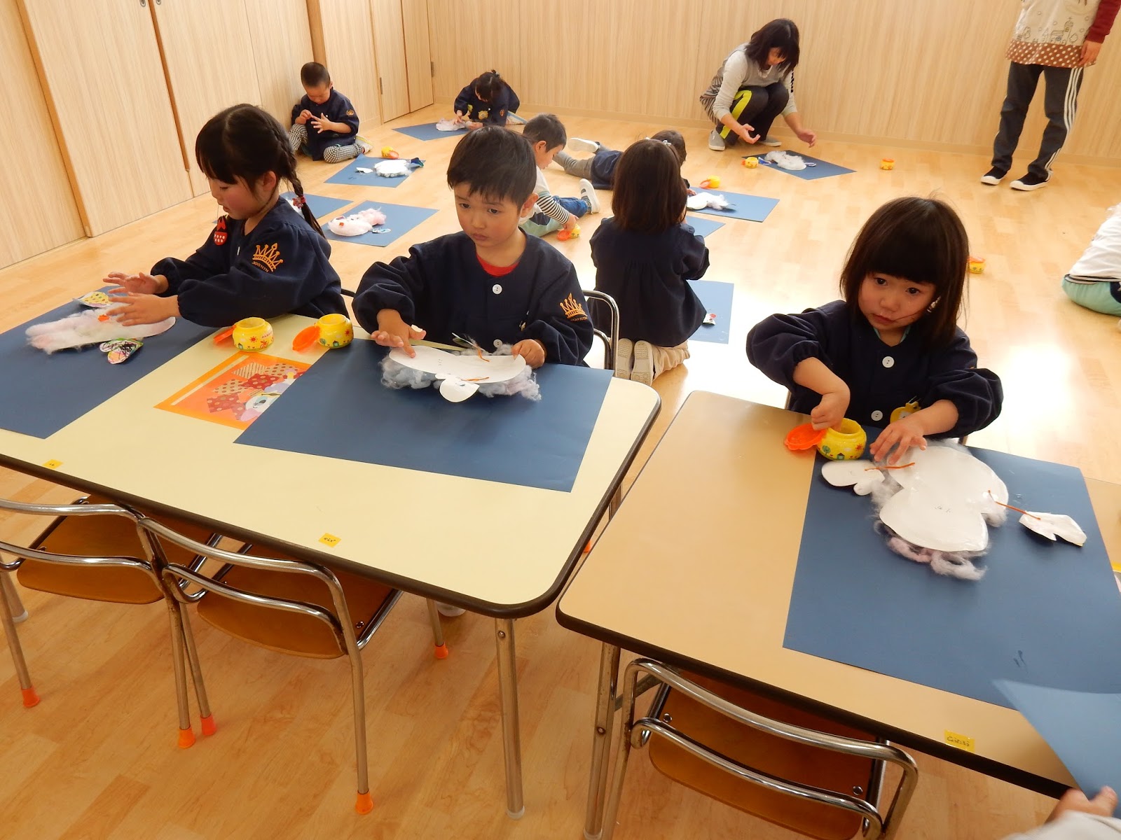 そんなひまわりさんは、先週から順番に小学校の半日入学へ出かけています。今日は、那留小学校と、白鳥小学校へ出かけていきました。那留小学校へ同行させていただきました。1年生のお友達の授業を見せてもらったり、一緒にお店屋さんごっこをして遊んできました。最初は緊張していたみんなでしたが、お土産もたくさんもらって、楽しかった!と大満足の様子でした。益々、進学が楽しみになりますね♪
