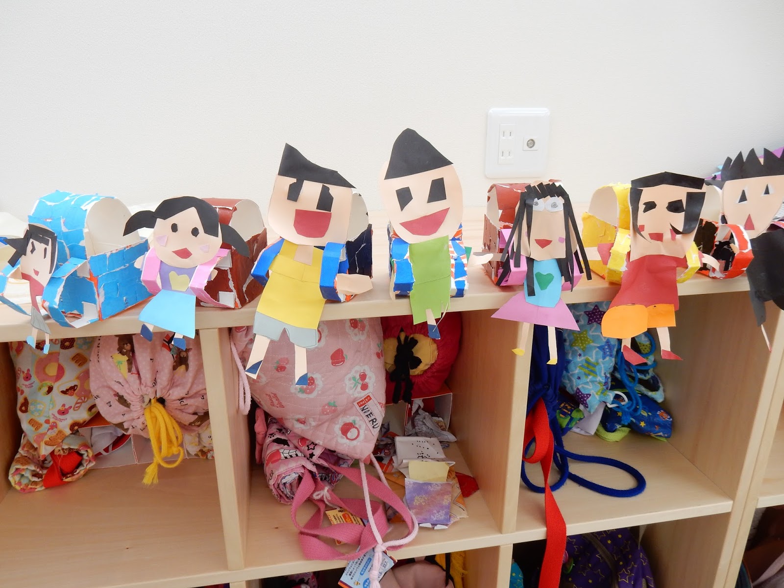 午後、ひまわりさんは何やら細かい作業を黙々と。出来上がったのは、一足早くランドセルを背負ったひまわりさん人形。服やズボン、細かいパーツに苦戦していましたが、納得いくまで頑張って作り上げました。出来上がった人形を見て、また就学への期待が高まりますね!
