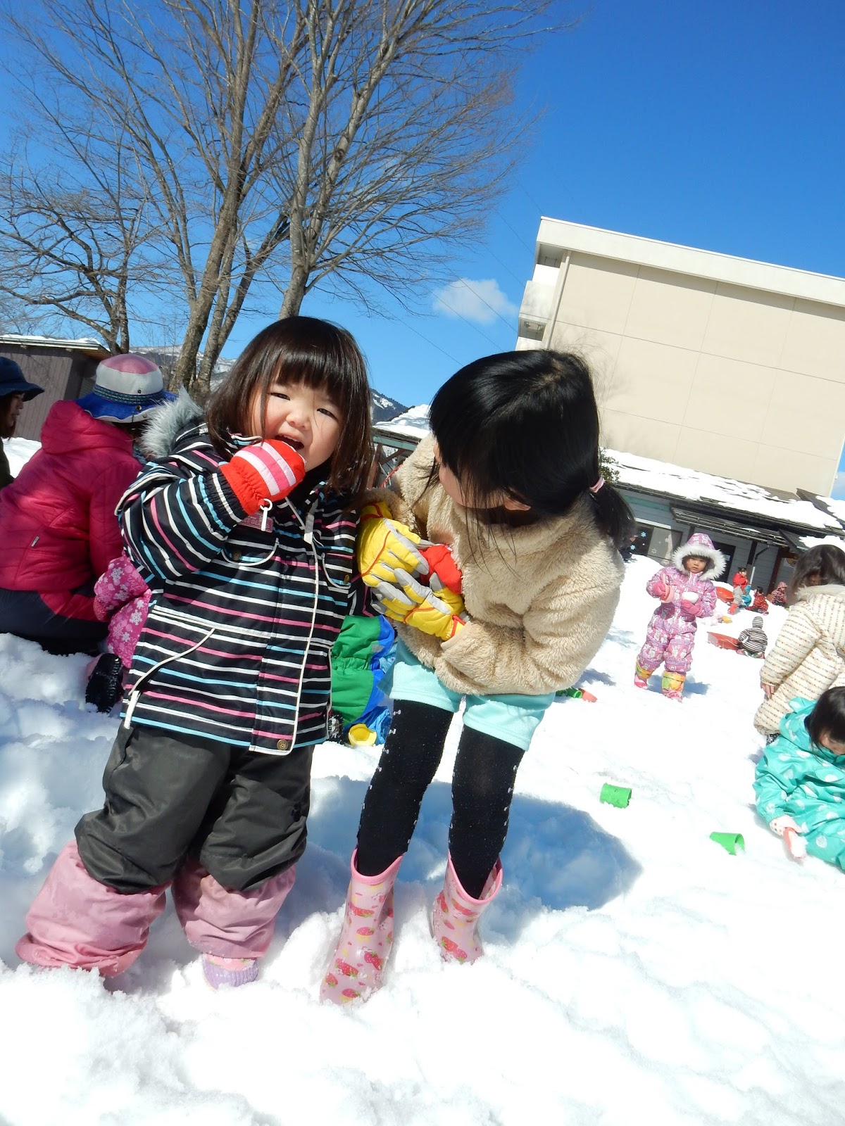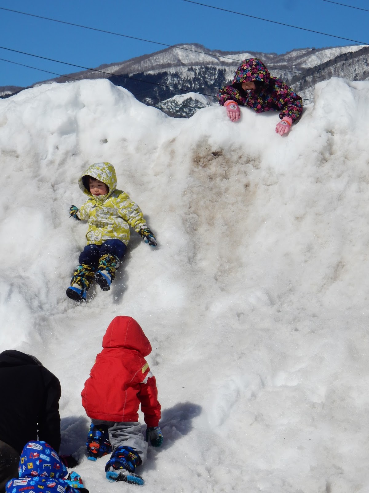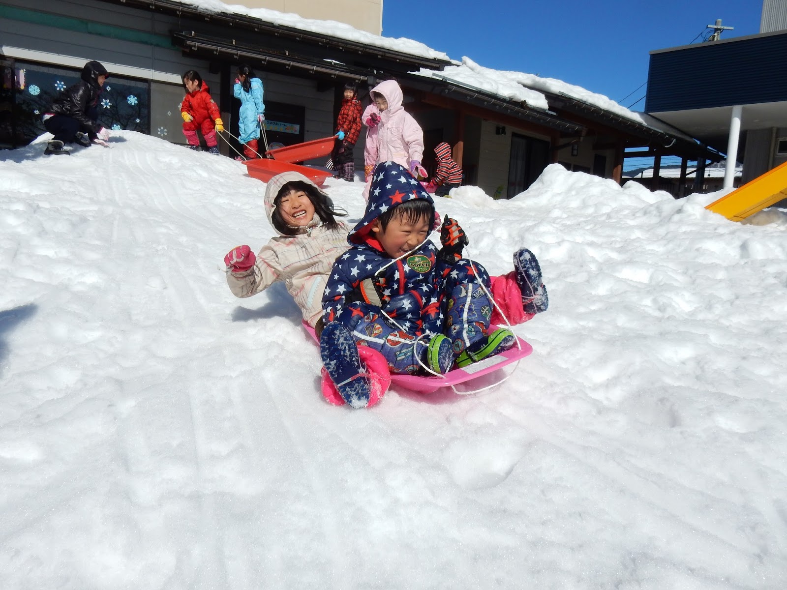 降り積もった当初に比べるとずいぶん減った雪ですが、まだまだ子ども達の遊びは尽きません!