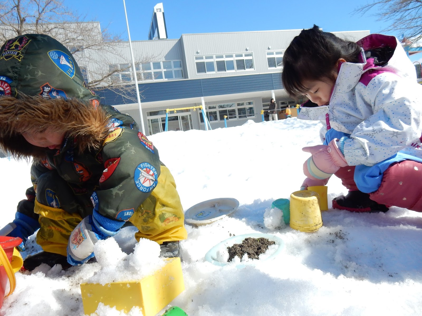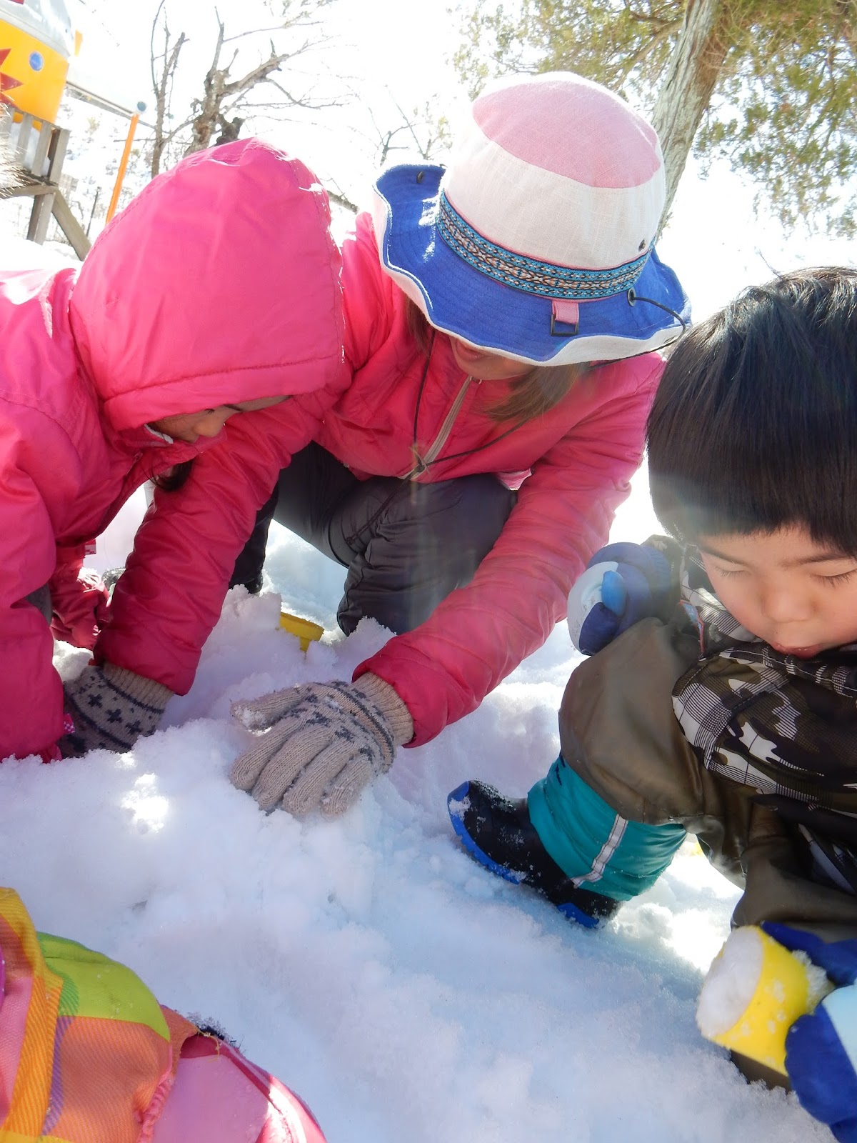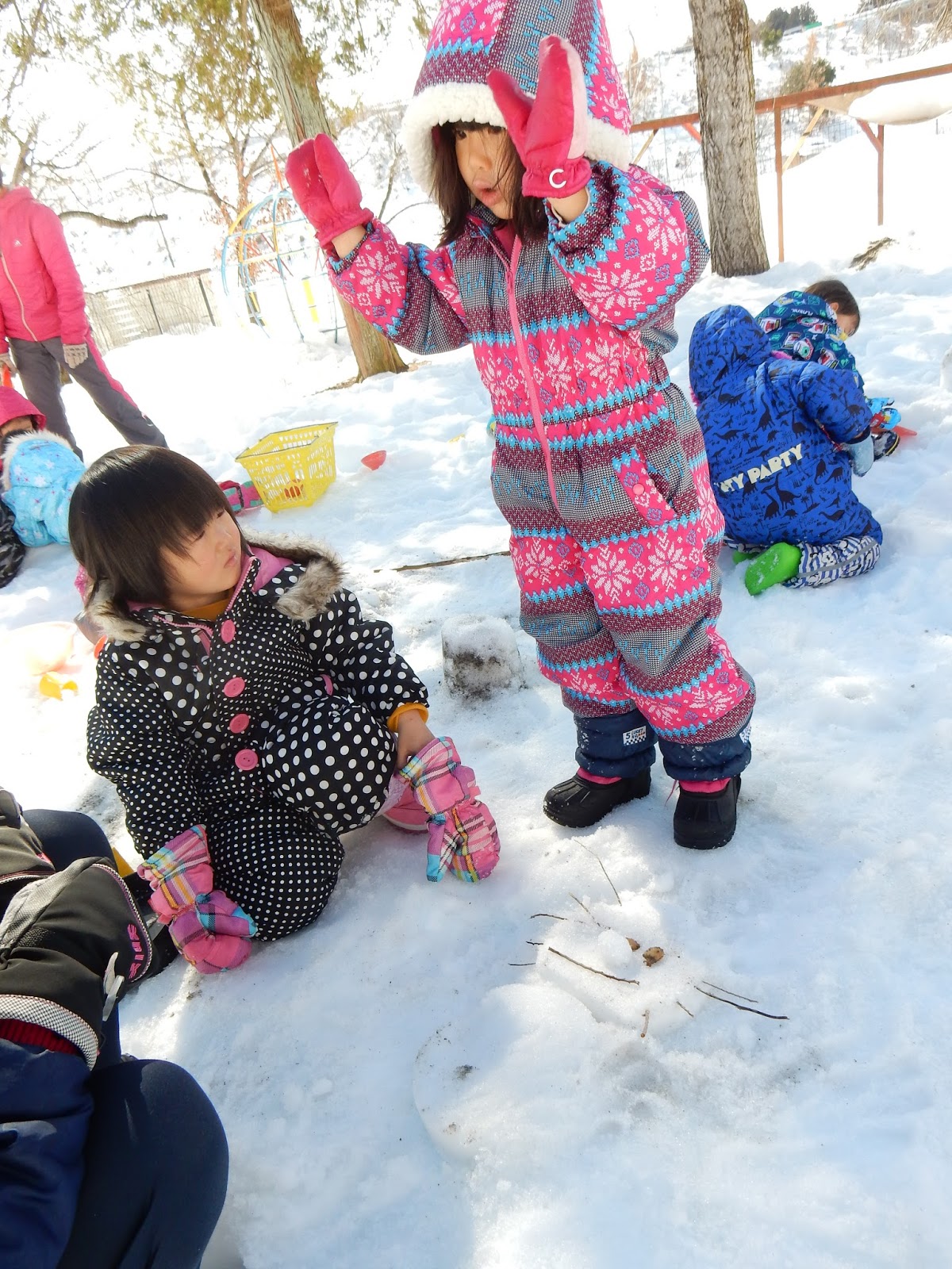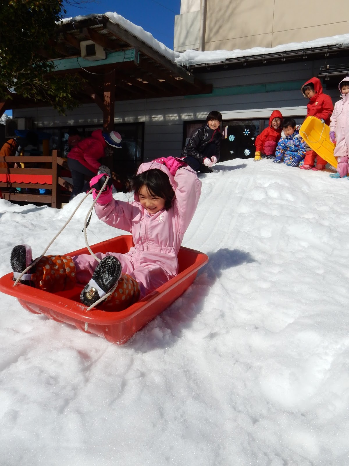 降り積もった当初に比べるとずいぶん減った雪ですが、まだまだ子ども達の遊びは尽きません!